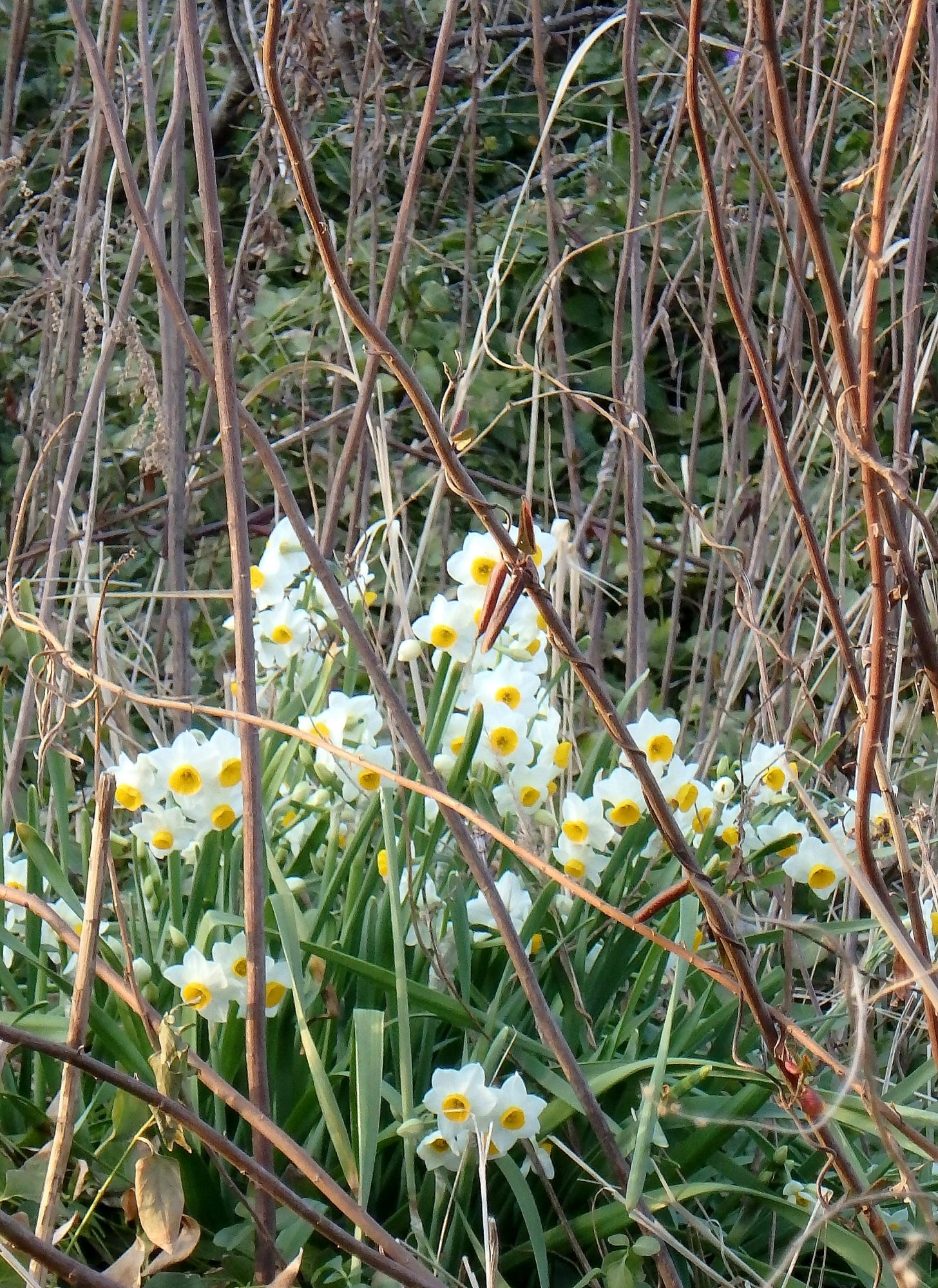 藪の中にはひときわ美しい、ひと群れの水仙。
