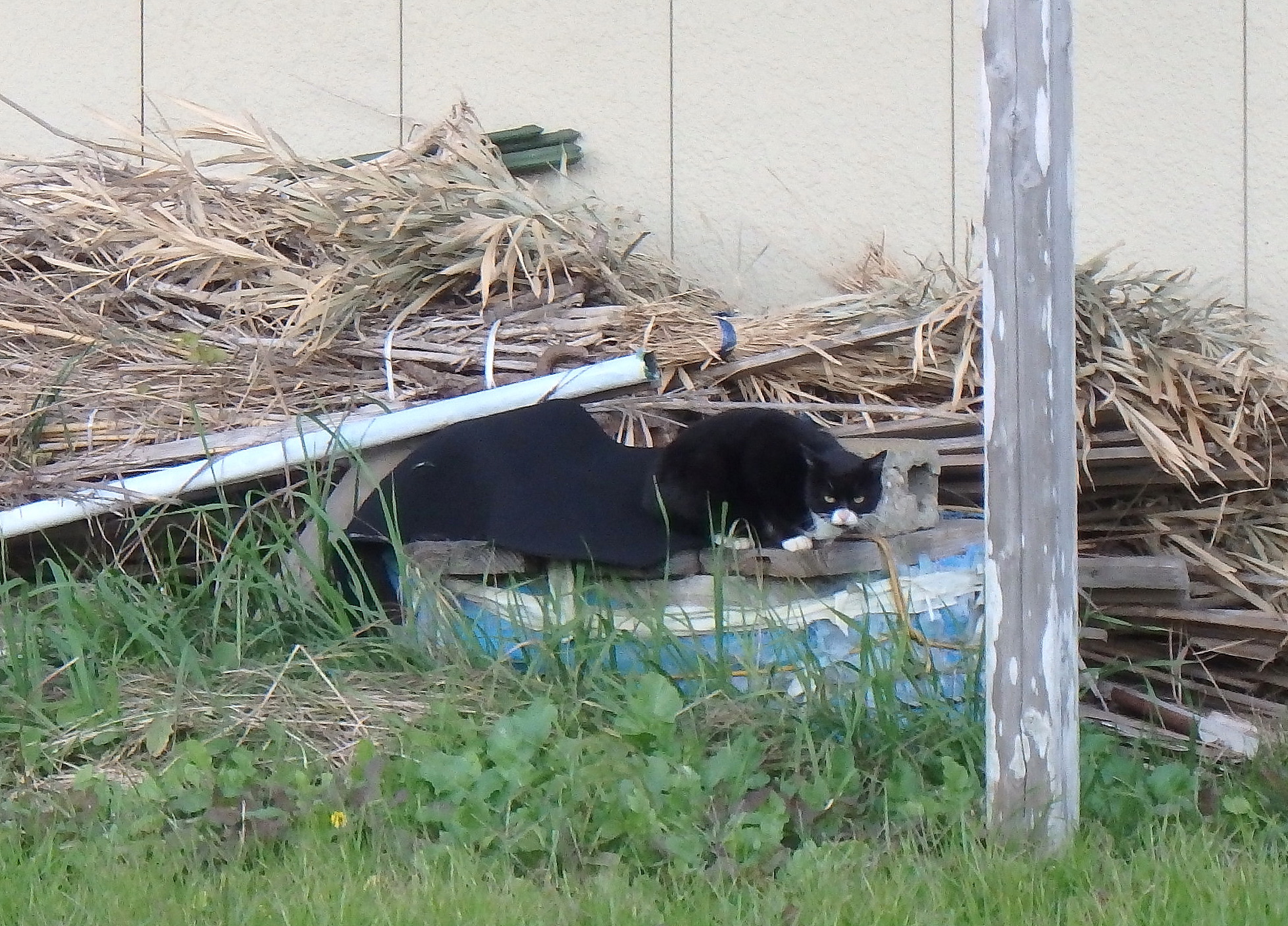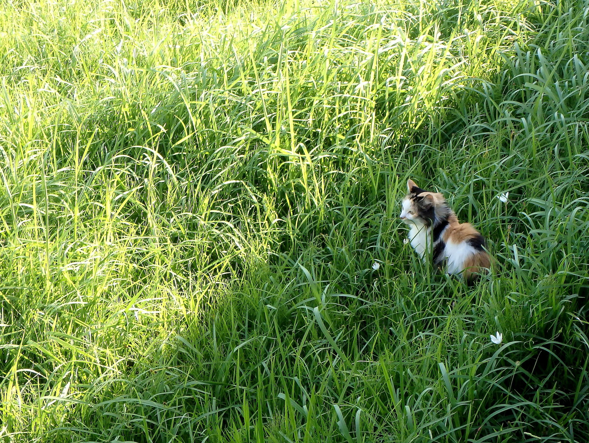 空き地の草も伸び、座ると姿が見えますが、寝るとほとんどミーは隠れます。