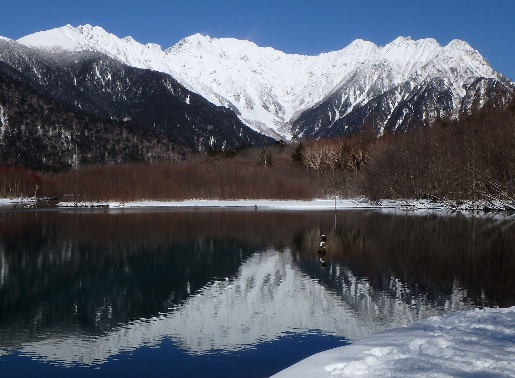 1月の上高地は20年ぶり位でしょうか?テントの重荷も素晴らしい光景に圧倒されました。清冽な流れにも眼を奪われます。