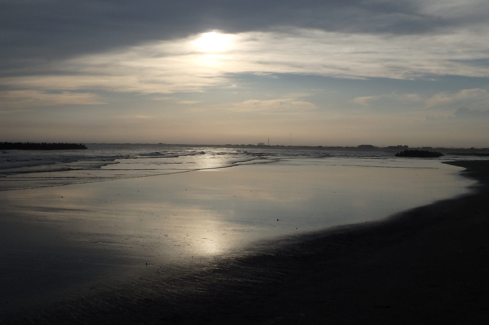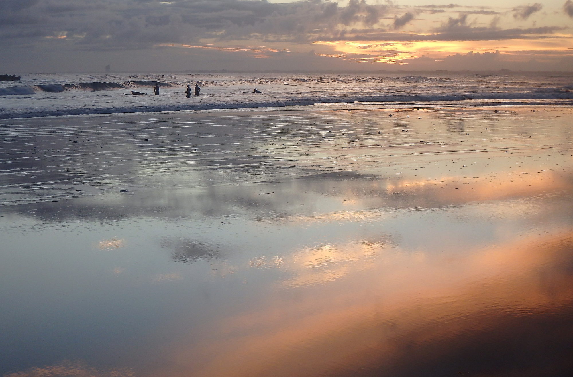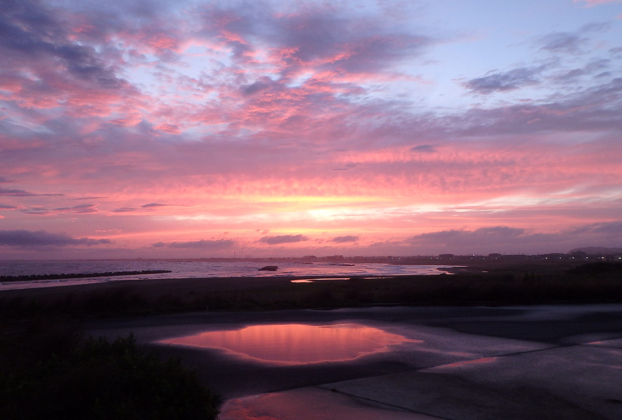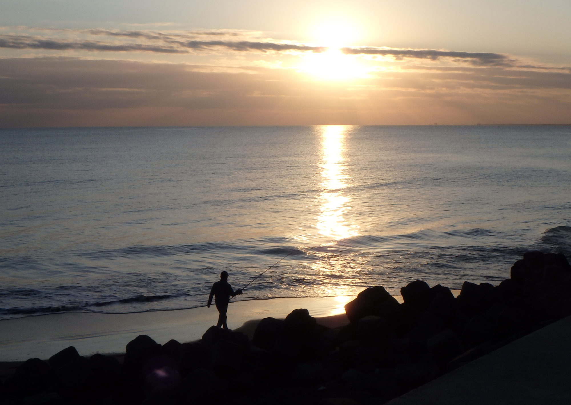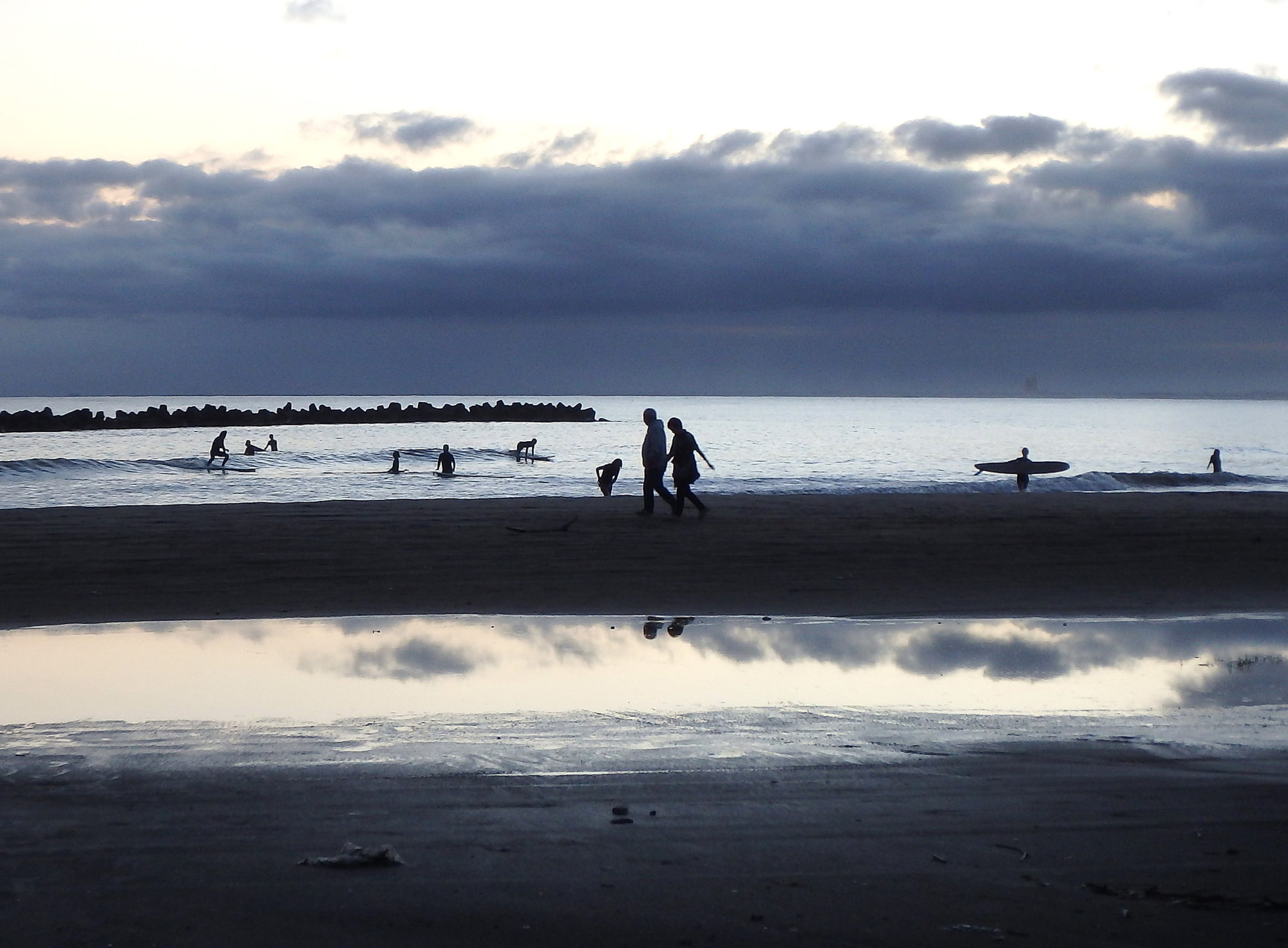 サーフィンや砂浜を散歩する人、日暮れも早まりました。