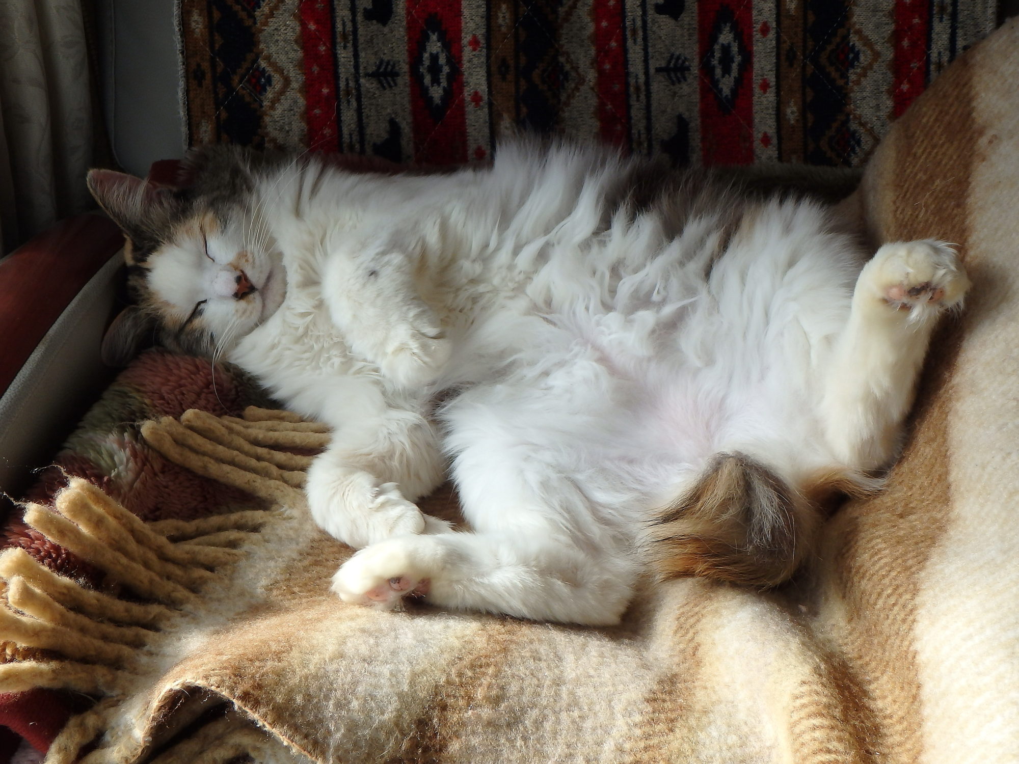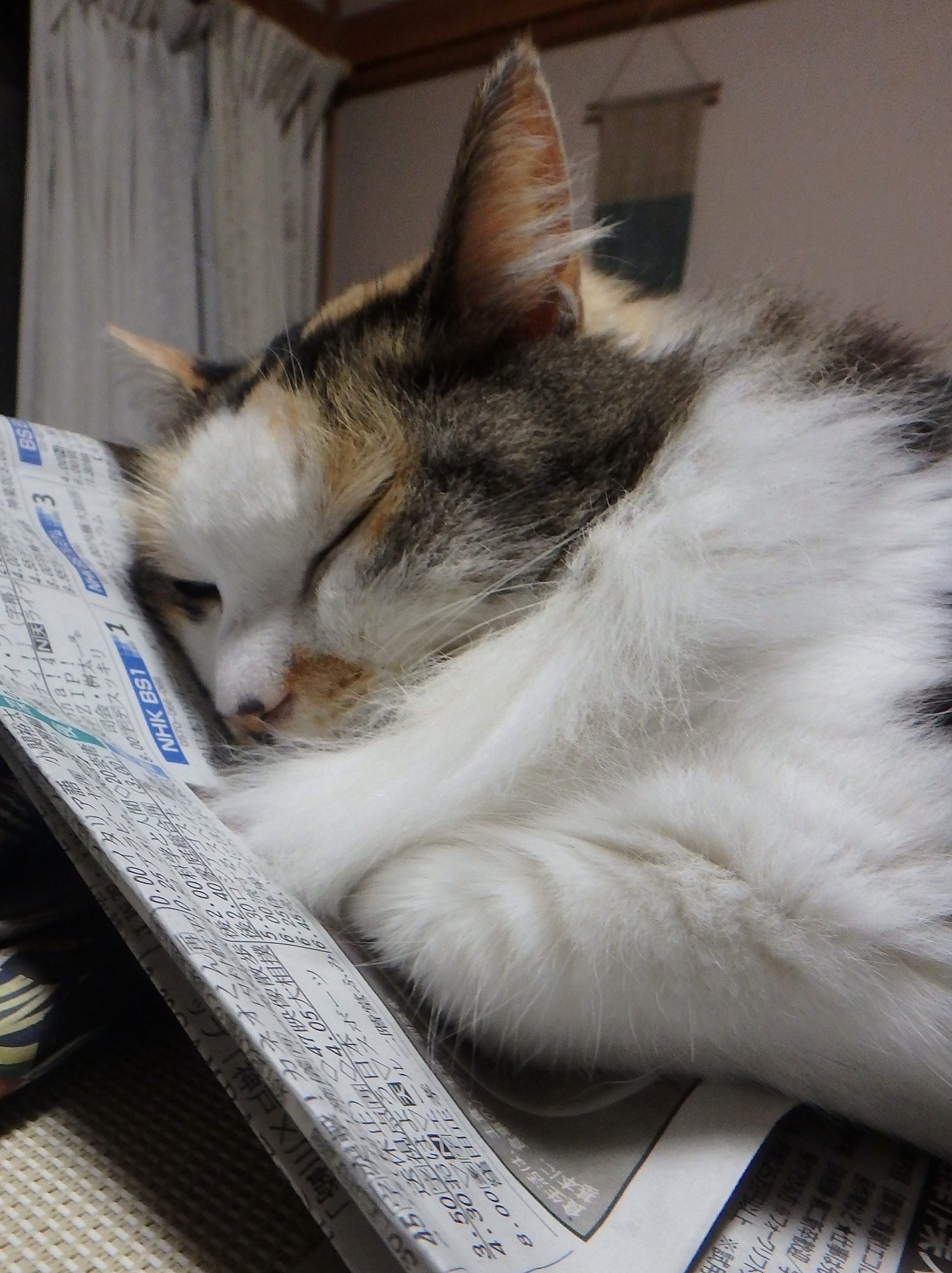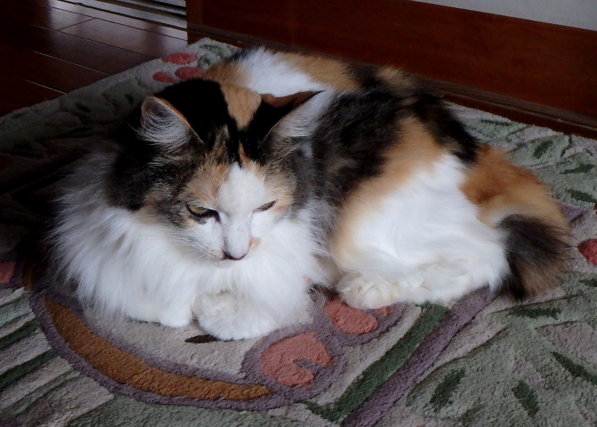 2019年12月を迎え、ミーも医者にかかったり薬のせいもあってか、生気を取り戻した感じです。丸くなって寝てますが、少し冬毛になってきてます。(=^・^=)ミー「スースー