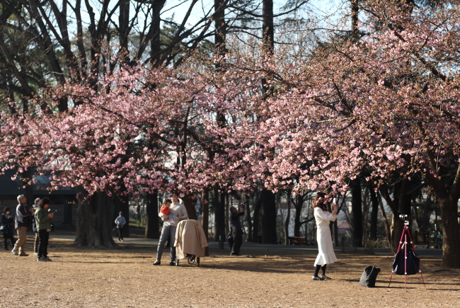 2月なのに気温が高い日が続いて、河津桜も咲き始めました。