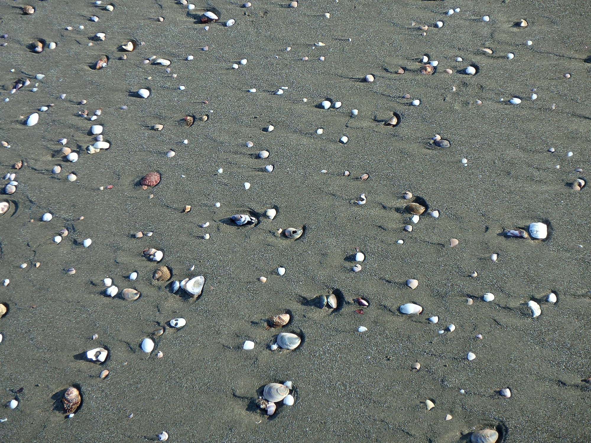 海岸は、ゴミも多いですが、貝殻模様は素敵です。