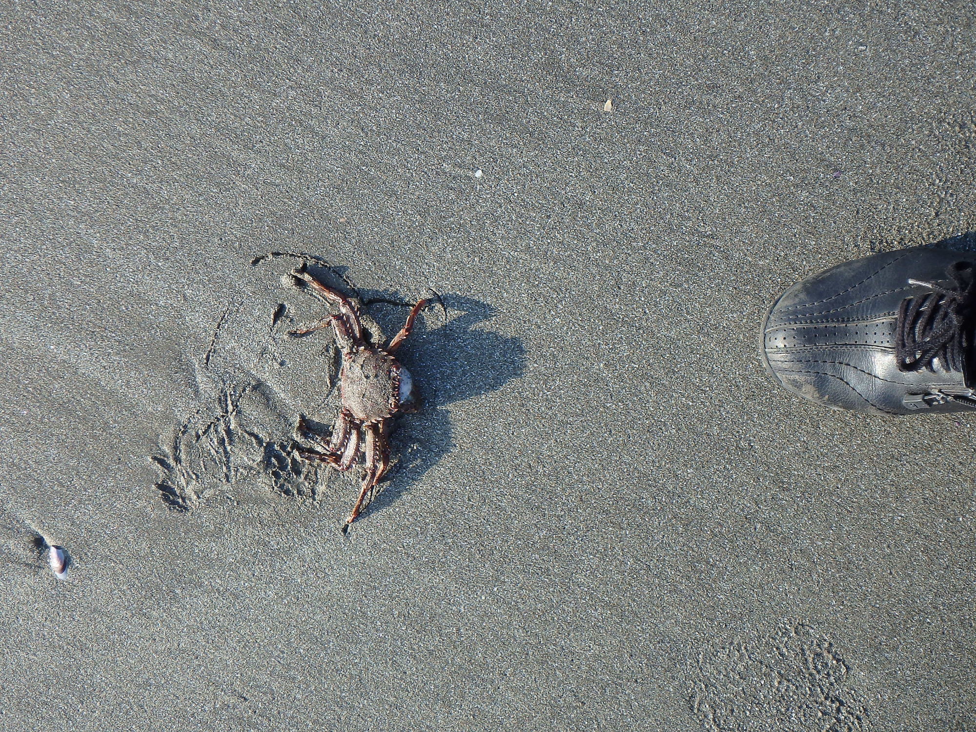 今日の海岸では、泡を吹いた蟹さんと出会えました。