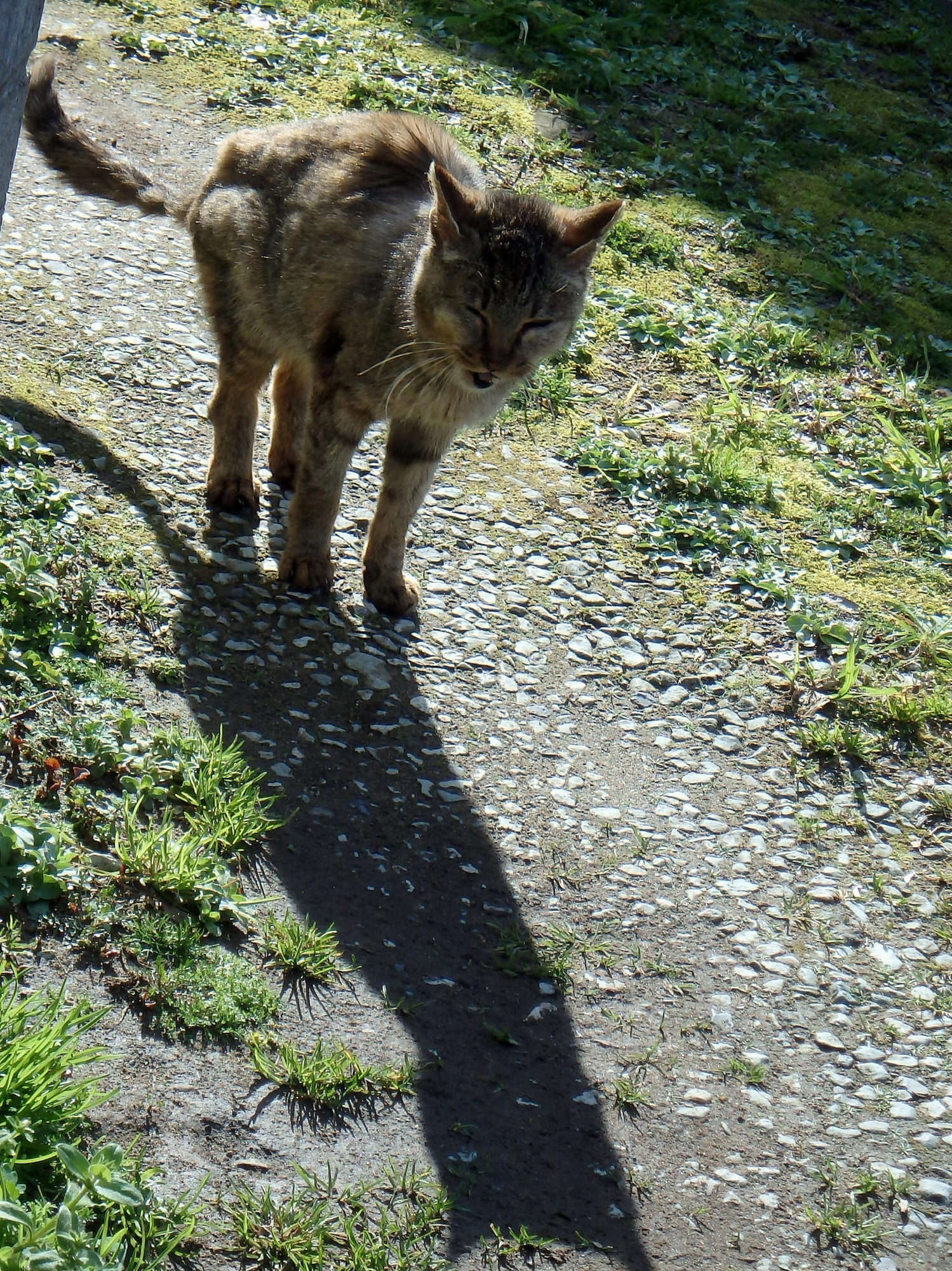 散歩の途中で、貧相な猫がニャーと人懐こく出てきました。