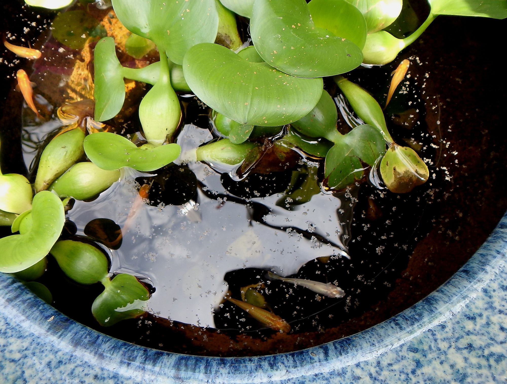 火鉢のメダカに餌をやりました。ミーが以前この火鉢から水を飲んでいたので、普段は網をかけてミーが手を出せないようにしてます。