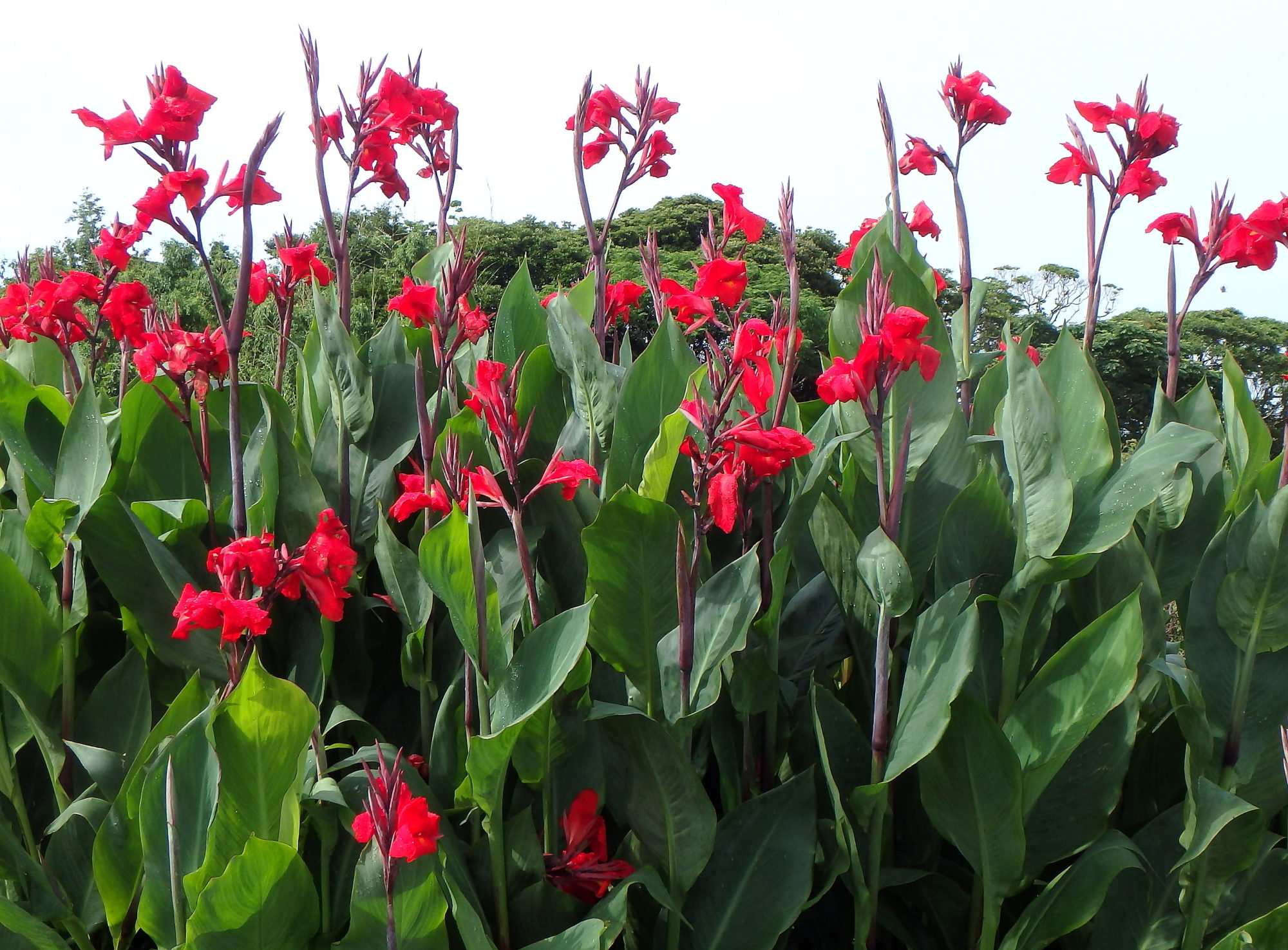 日差しがさした日の畑の脇には、カンナが咲き誇ってました。