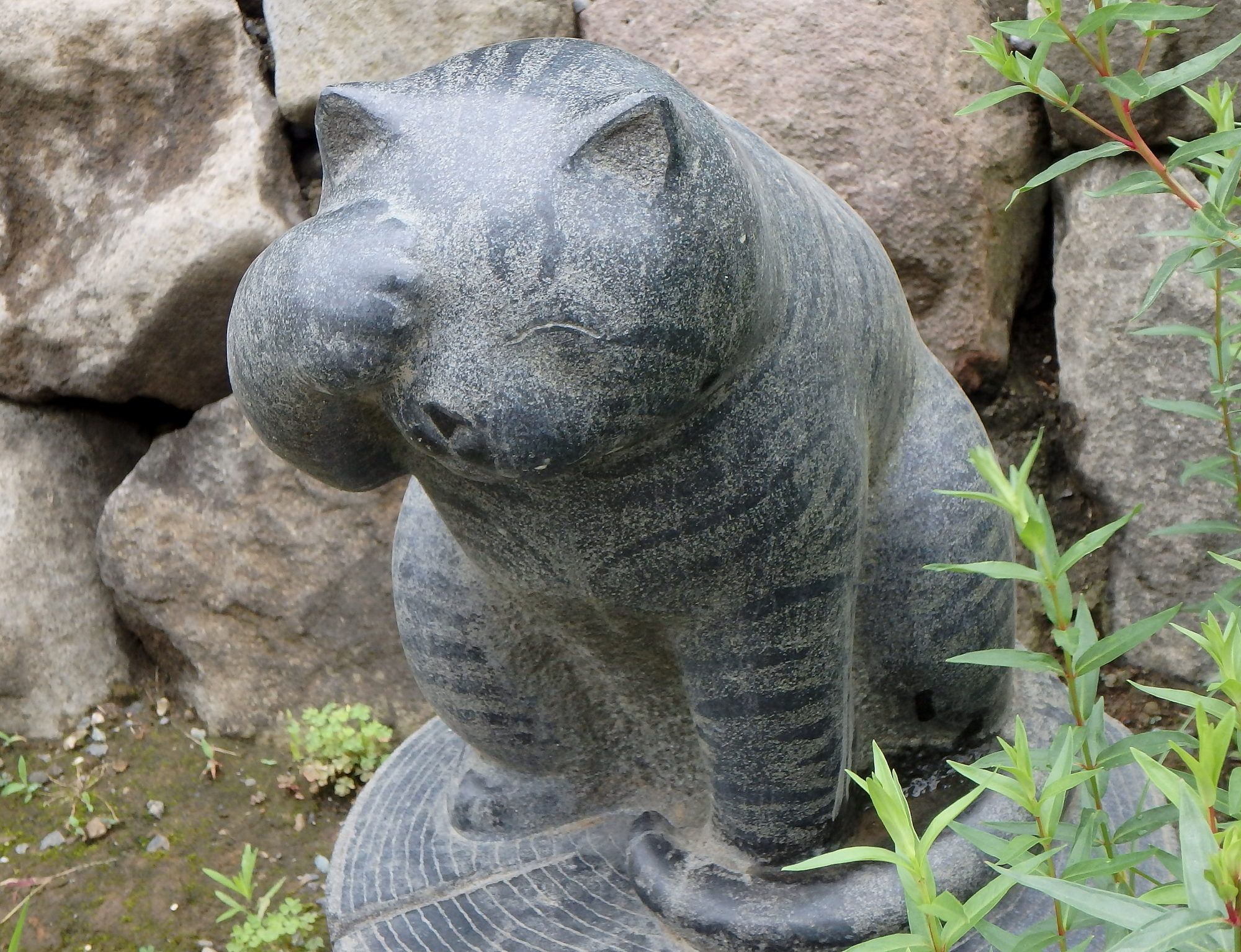 遊歩道には猫の置物が点在してます。たぶんブチ模様の招き猫。
