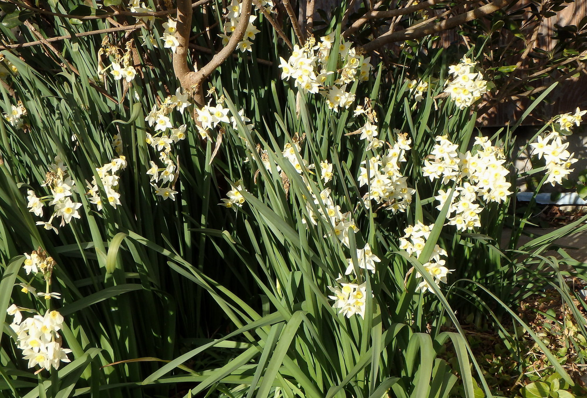 花が少し長めの水仙も盛りです。タゼッタスイセン(房咲き水仙)だそうです。