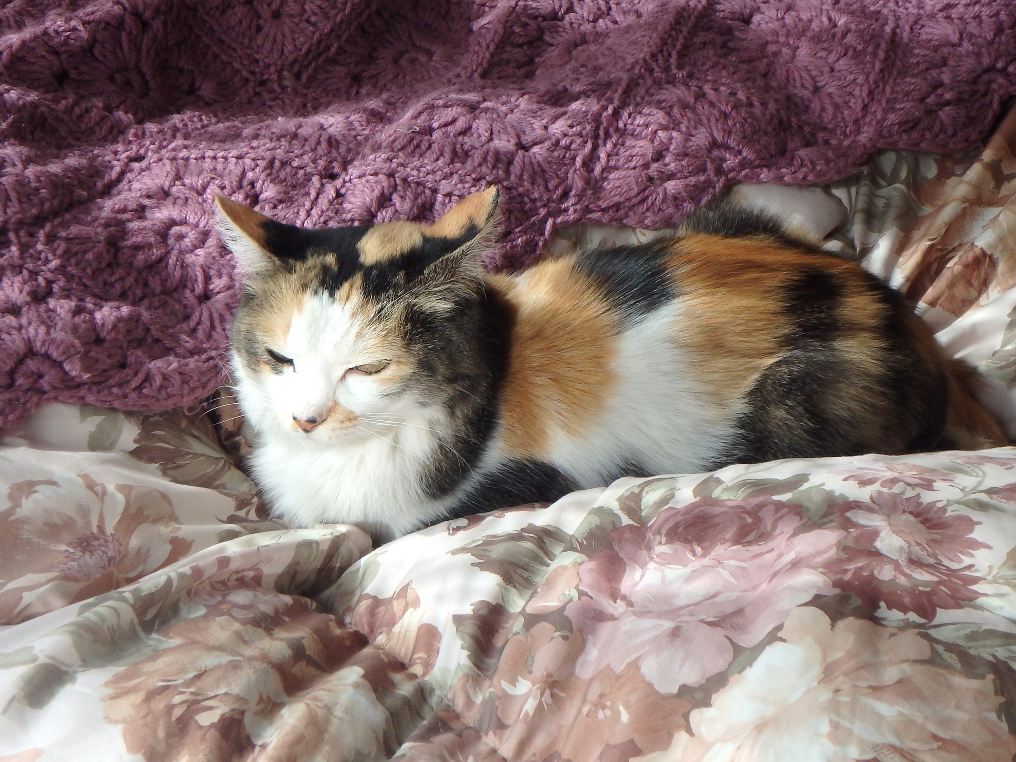 日当たりの良いベットの上で、薄目で様子をうかがっています。