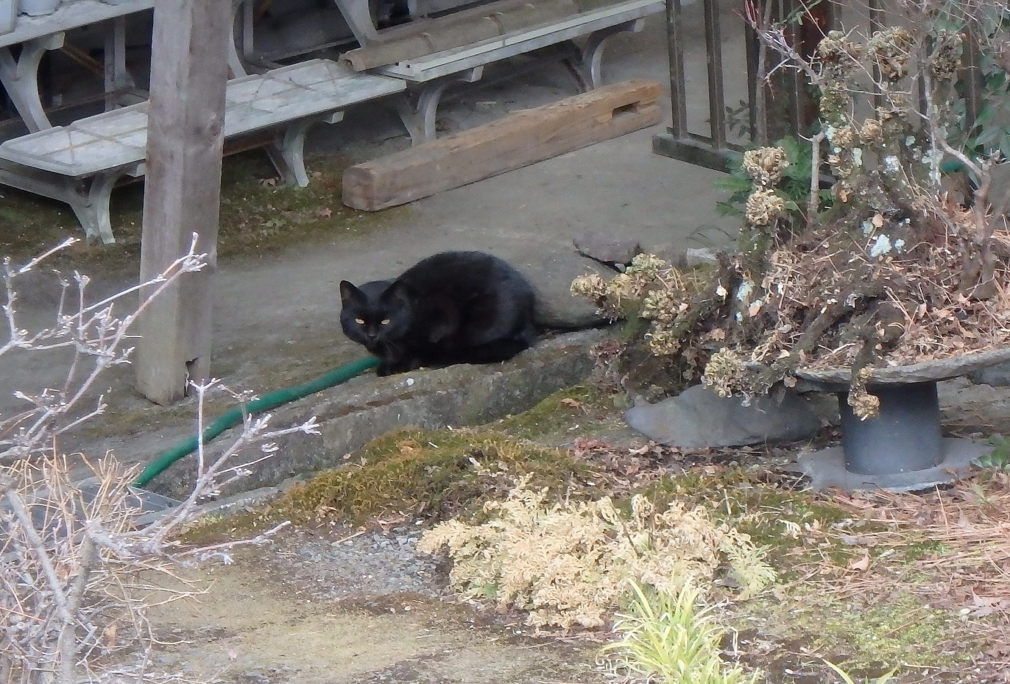秩父方面に出かけた時に、見かけた黒猫さんです。民家の玄関先におりました。