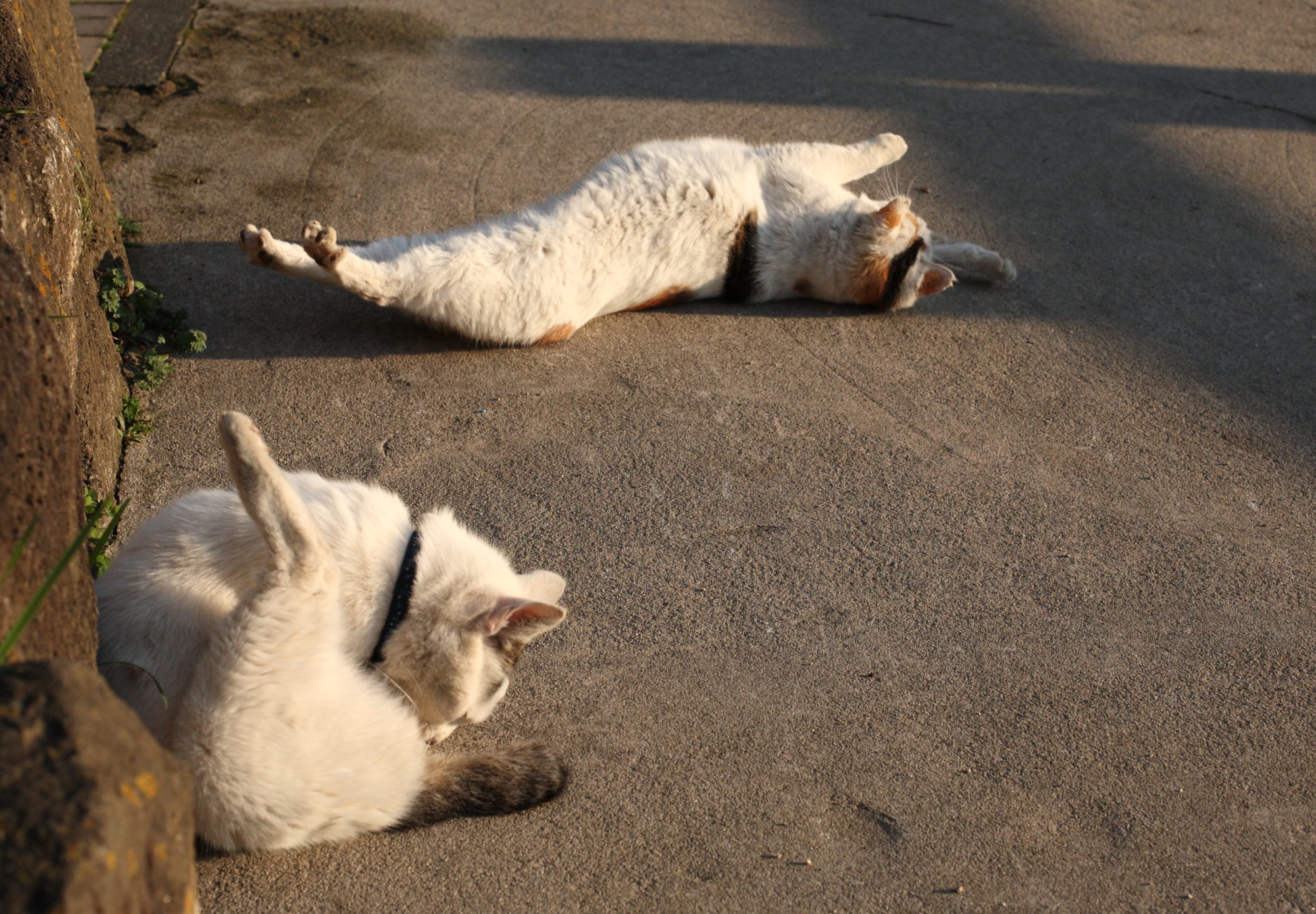 公園の猫さんは、朝の伸びと毛繕いに励んでます。