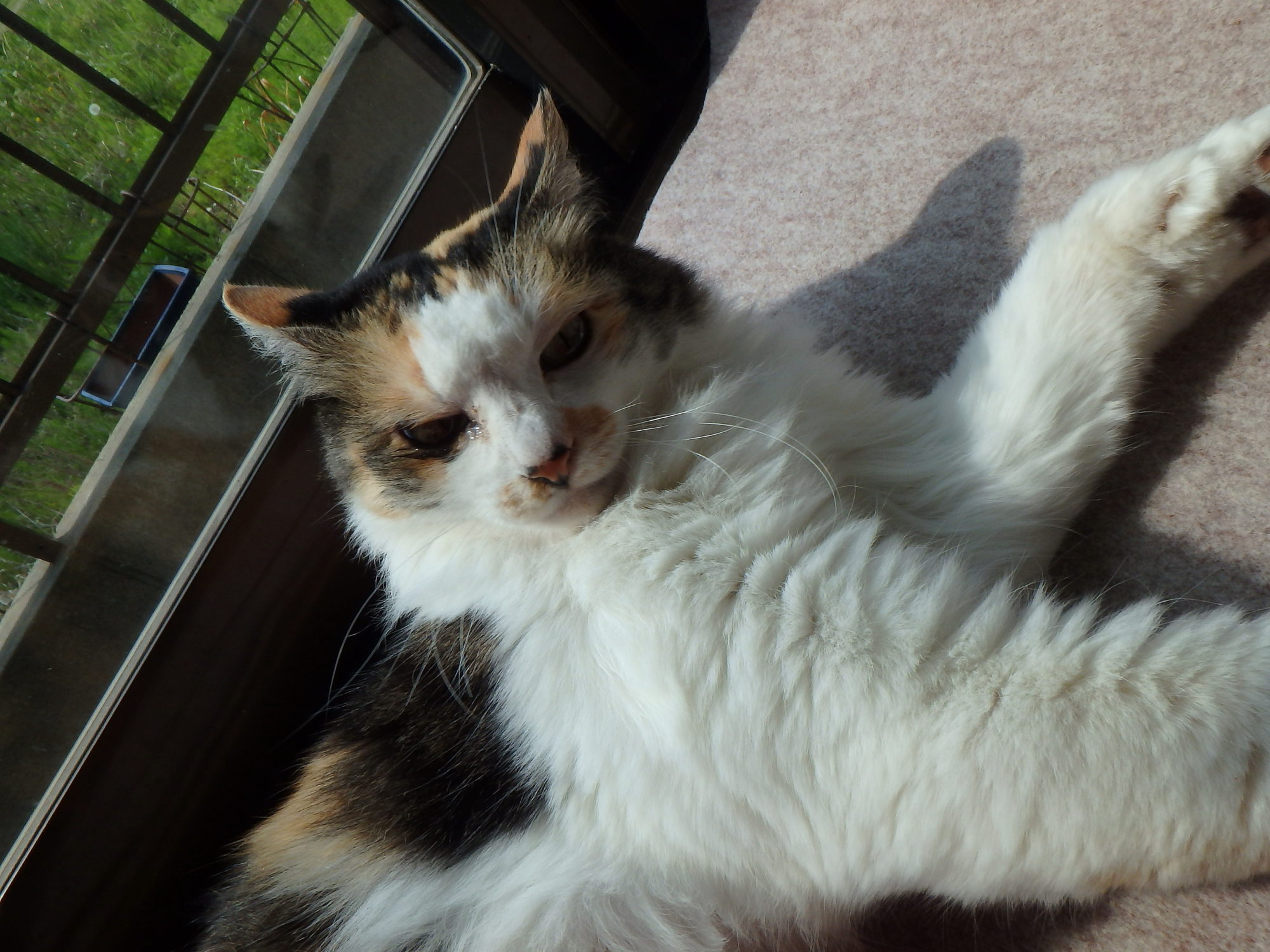 日向で寛いでますが、まだ右目が涙目です。