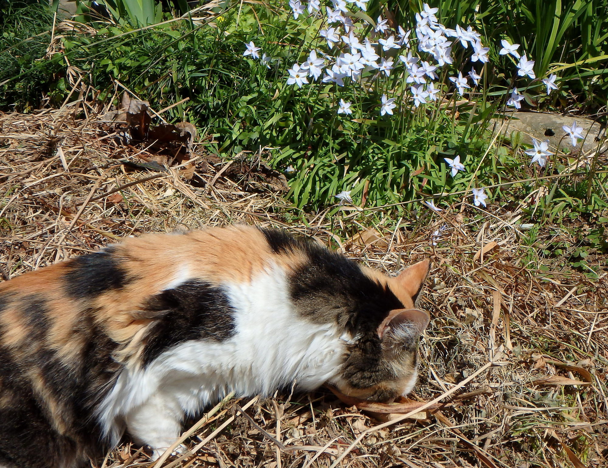 暖かい日は、お腹を見せて寝ころんでます。