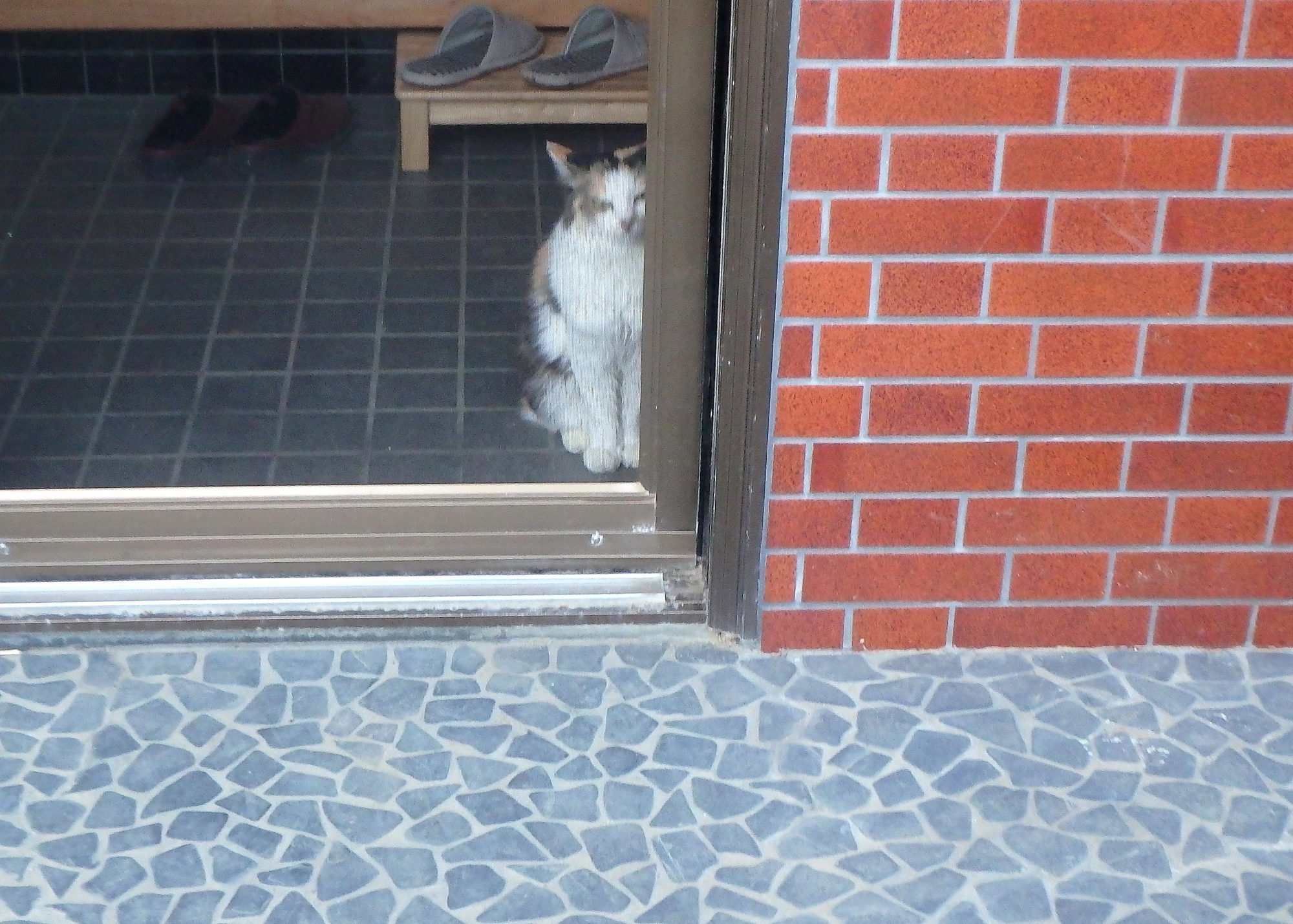 網戸は自分で開けられるのに、玄関の内側で待機してます。