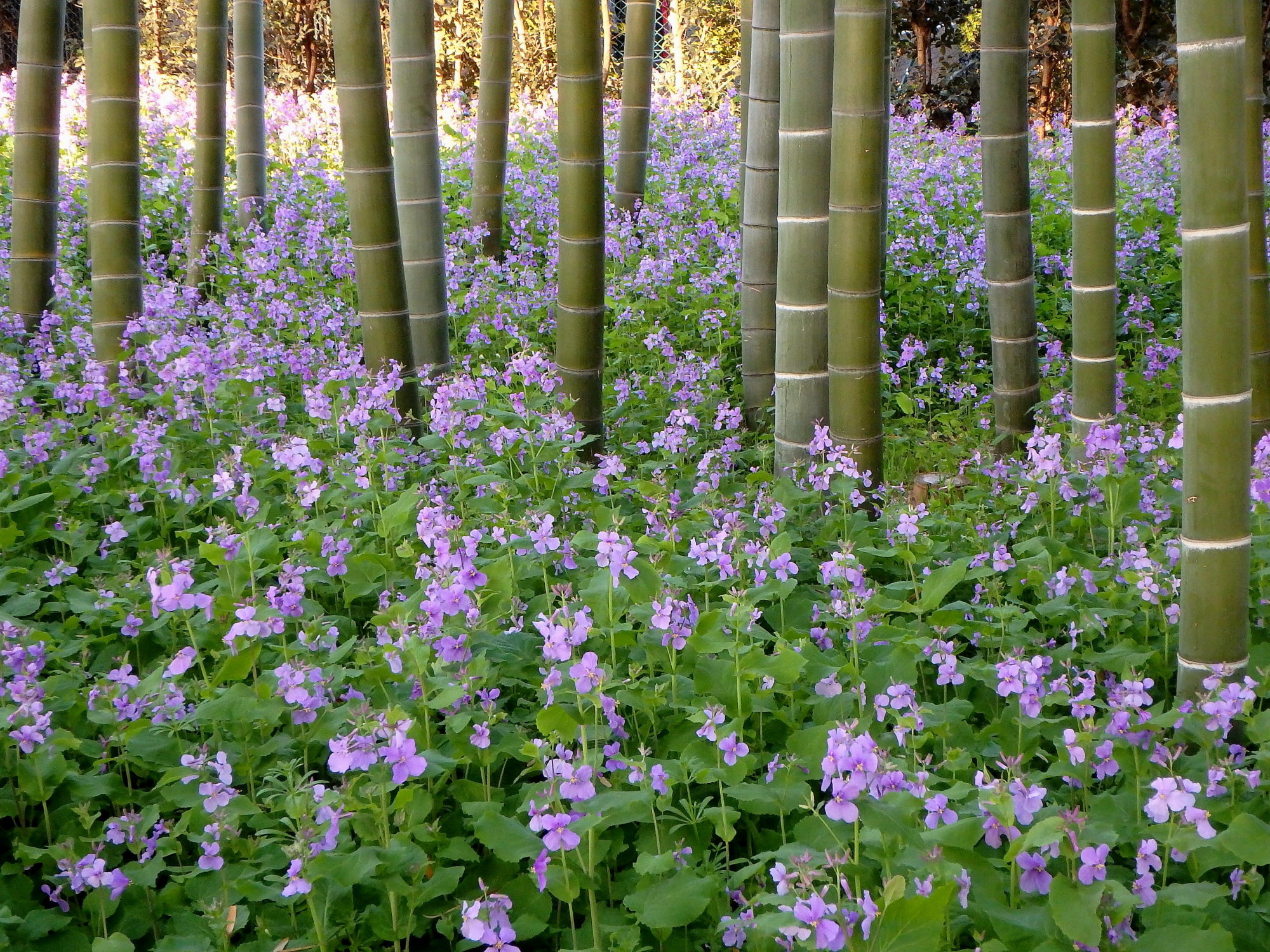竹林と花ダイコンが咲いてました。