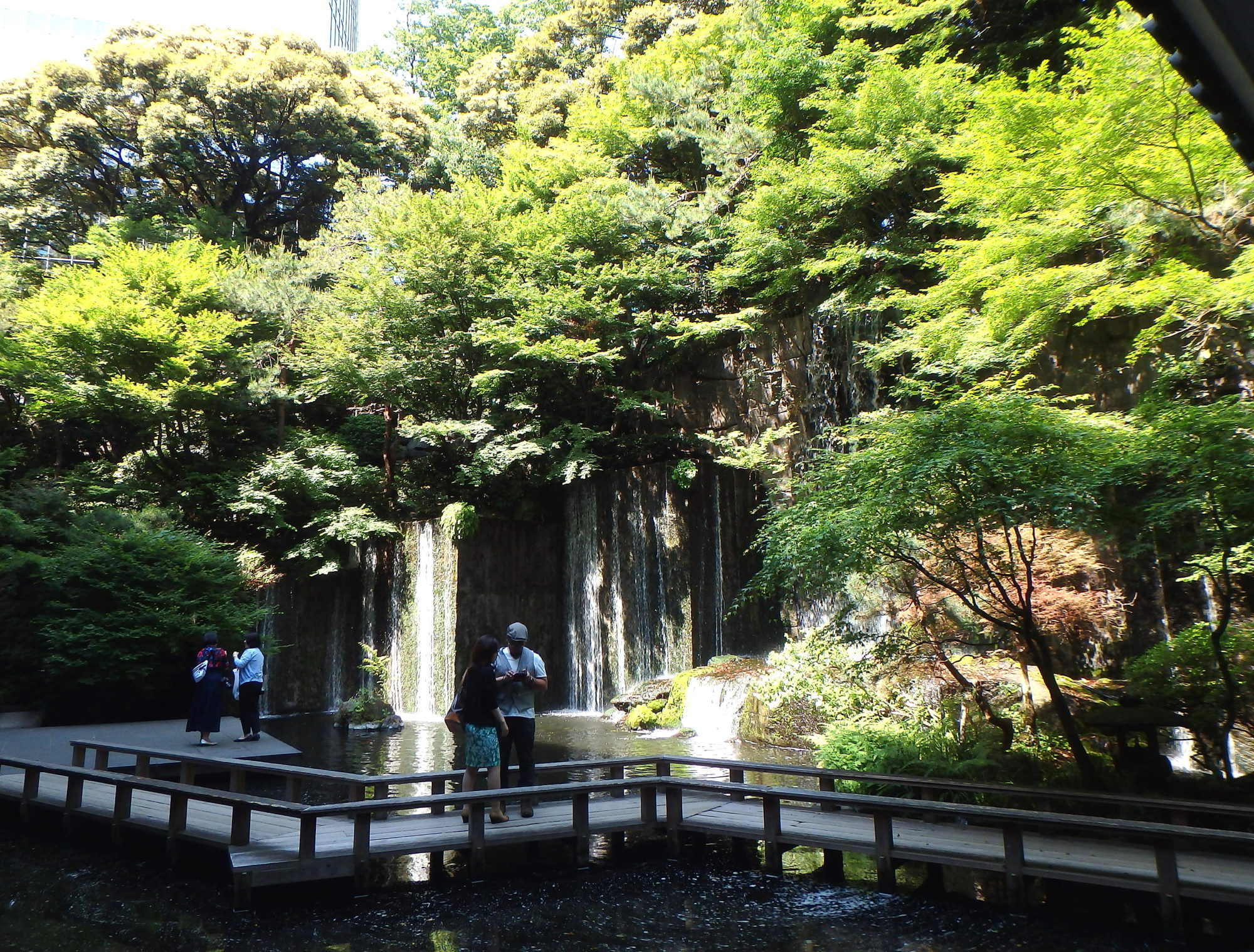 雅叙園に来ると、滝と池の周りを必ず歩きます。滝の裏にも遊歩道から行けます。深緑が鮮やかでした。