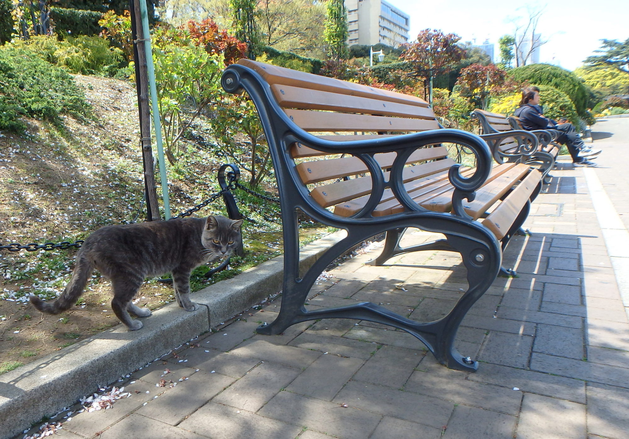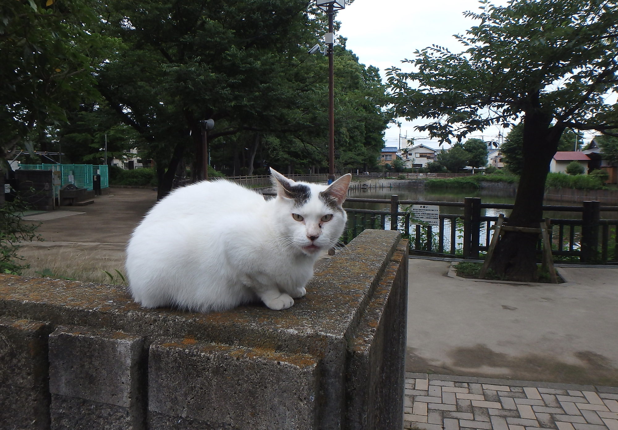 公園の猫は、撫でても大丈夫です。前は数匹いましたが、今は三匹しか見かけません。門の上で、餌を届ける人を待っているのかも…。