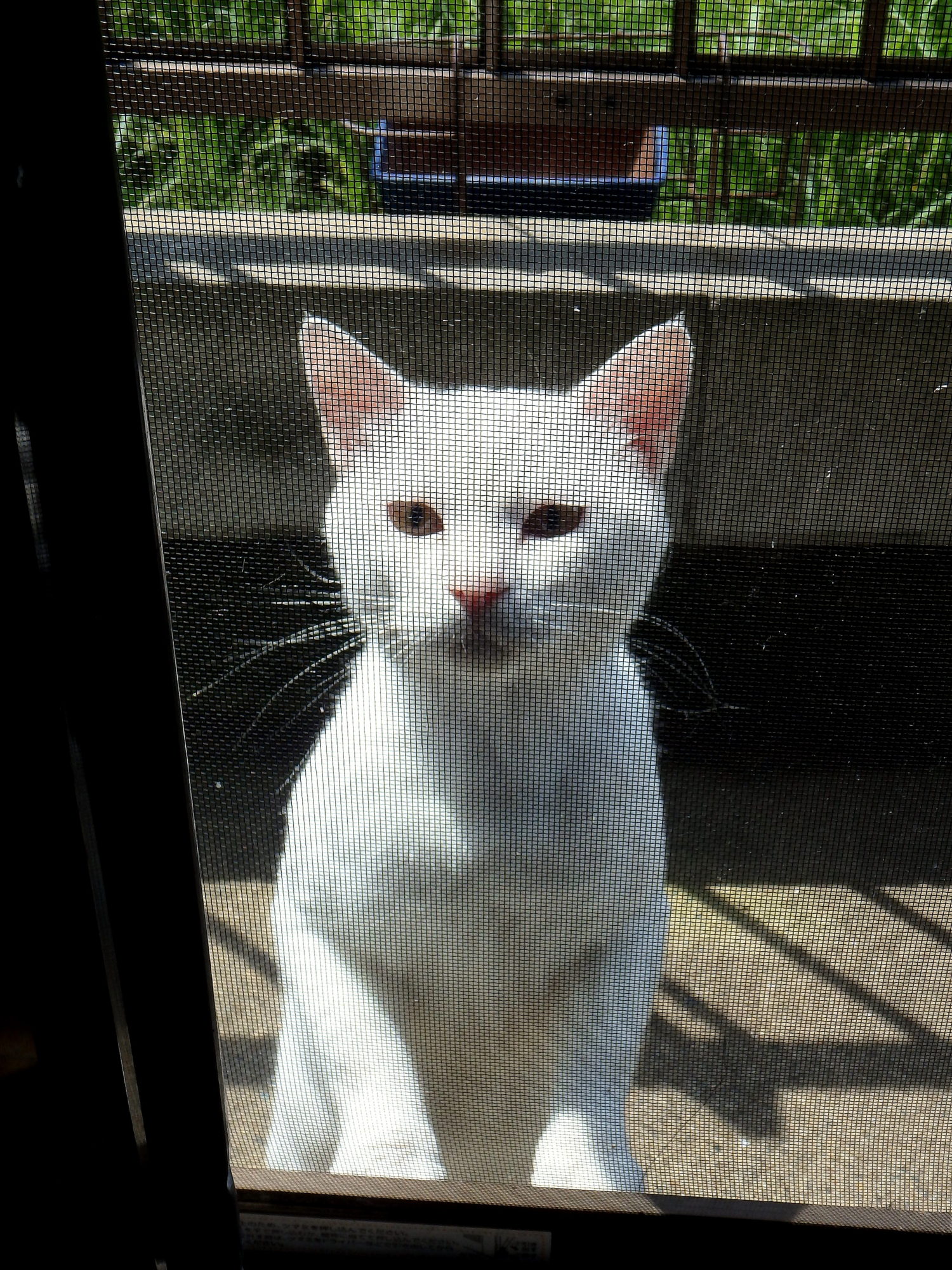 網戸越しに、シロちゃんがご挨拶!日参して人懐こいです。良く鳴くし~。