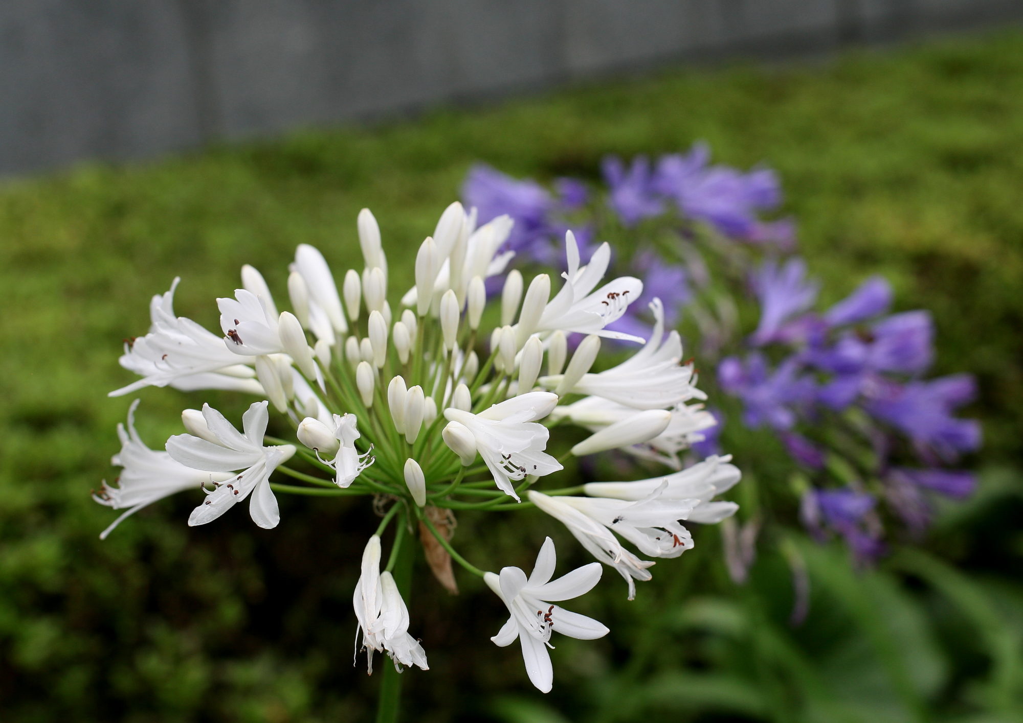図書館の横の公園に、アガパンサスの白花が綺麗でした。
