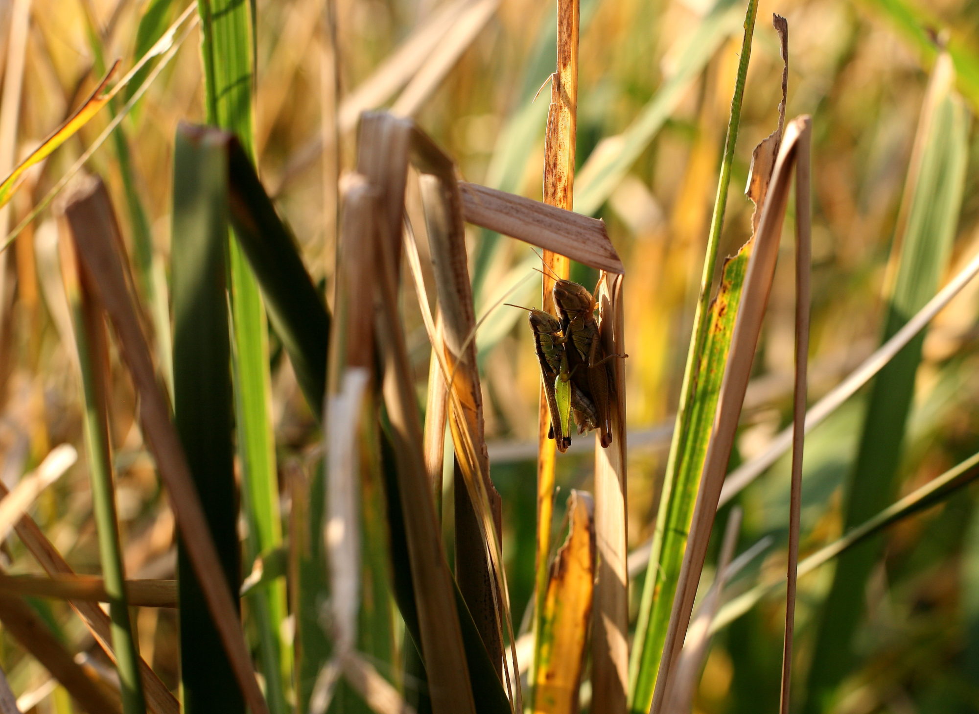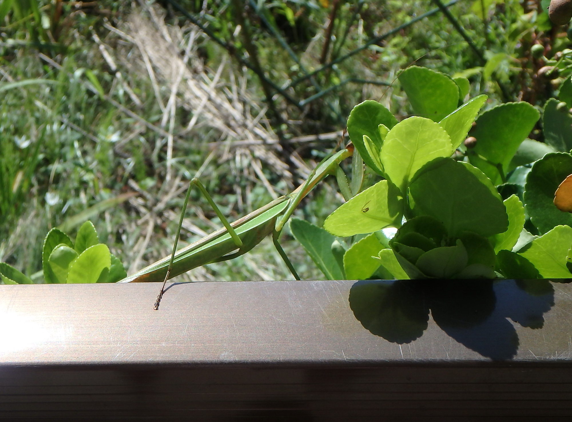 カマキリさんも日陰に逃げました。