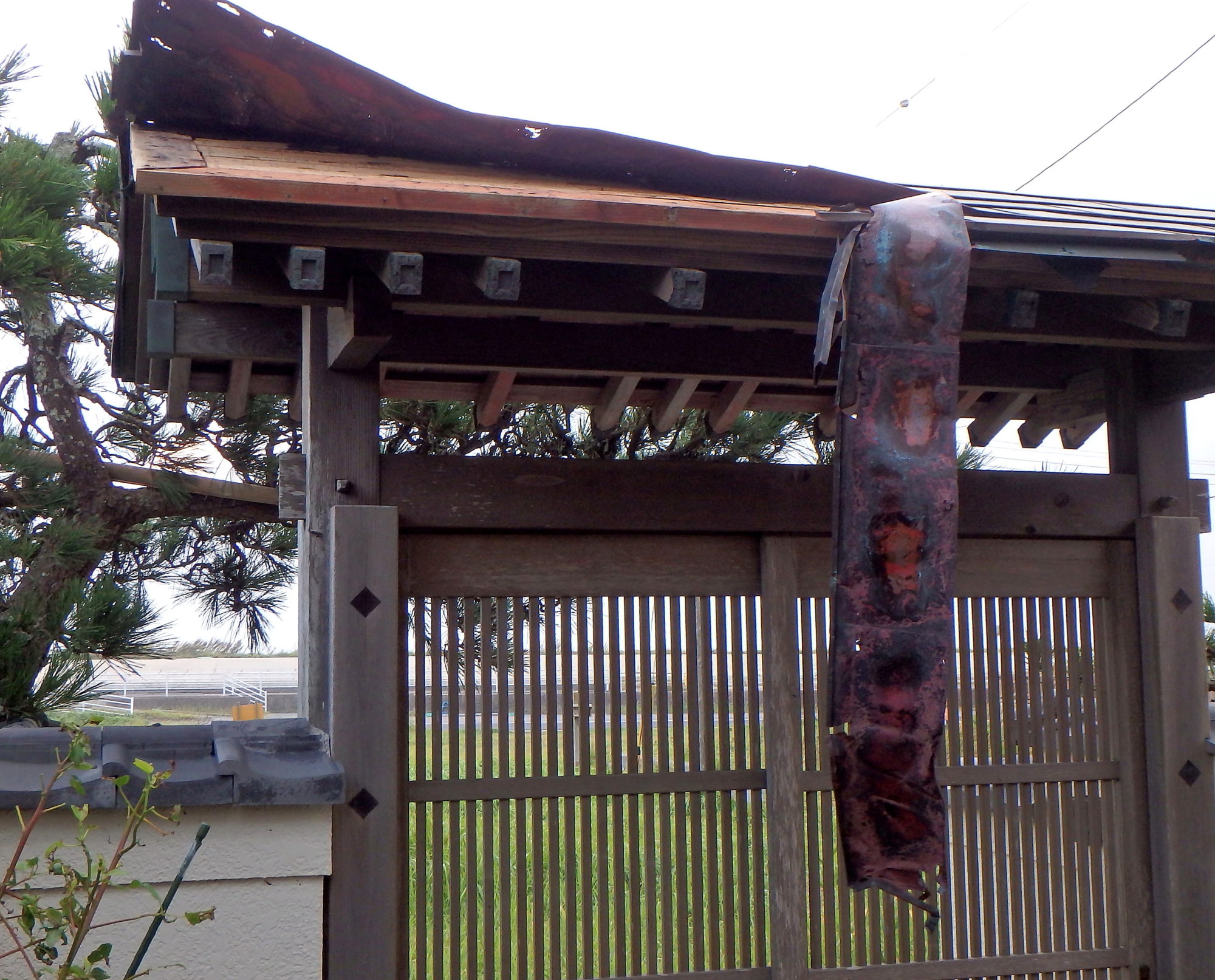 格子戸の銅板も剥されました。南房総の被害を思うと、一刻も早く修復できるよう祈るばかりです。