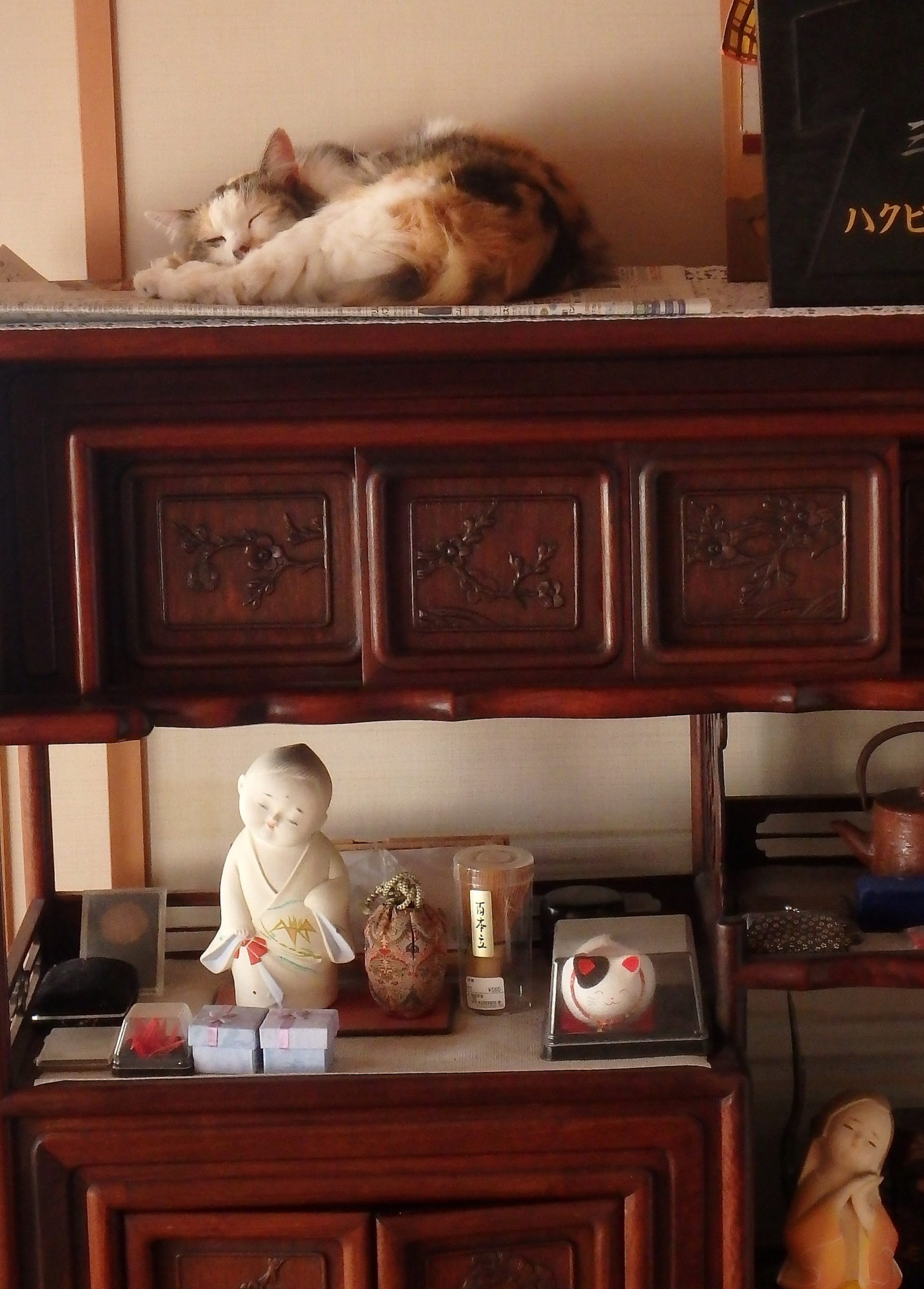こちらの棚の上でも寝てます。