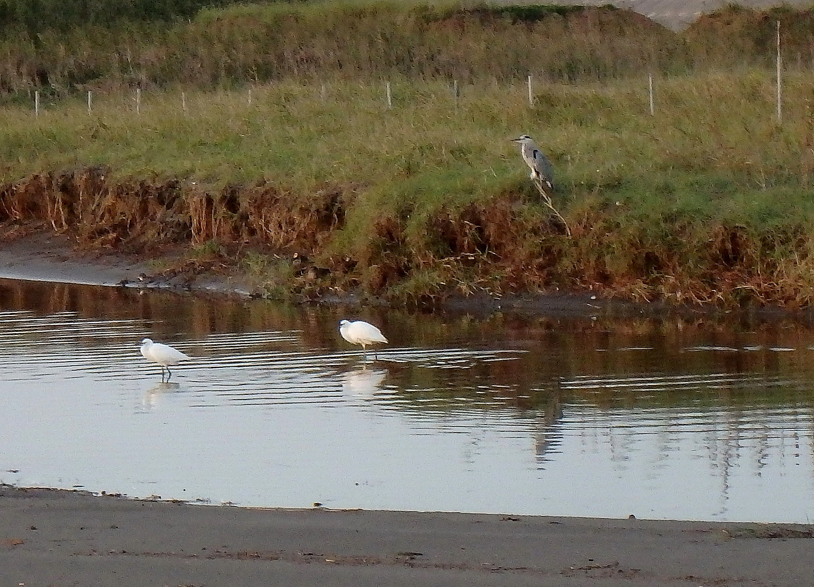 水辺では、鳥たちが羽を休んでました。