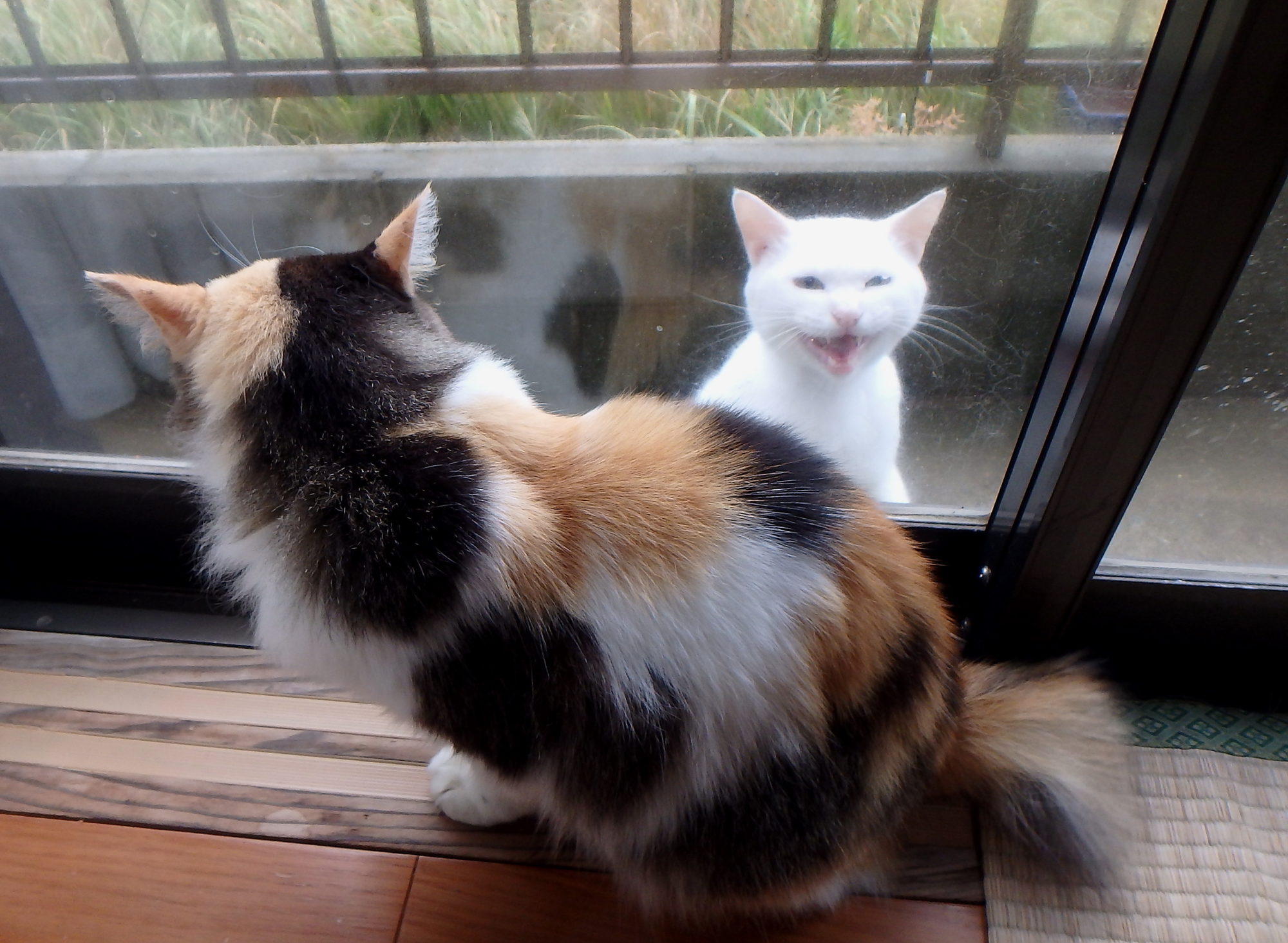 トンガリ目のミーを、外からパチリ。