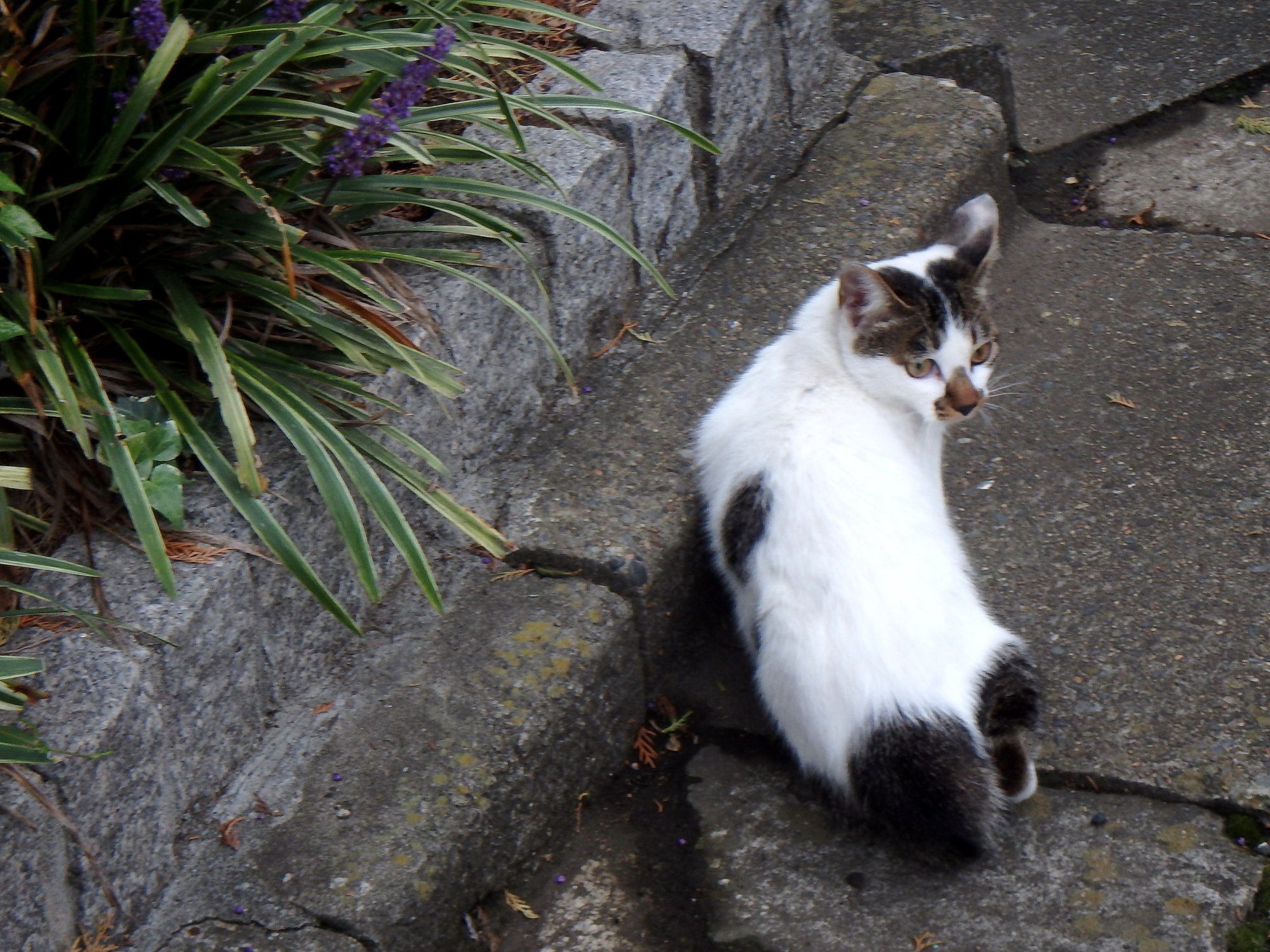 道を走って横断した(=^・^=)鼻黒子猫「スズメを追ったけど…何処か行っちゃった?」キョロキョロ。