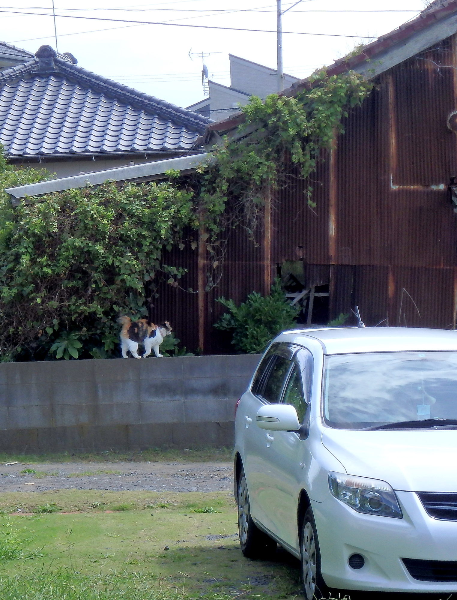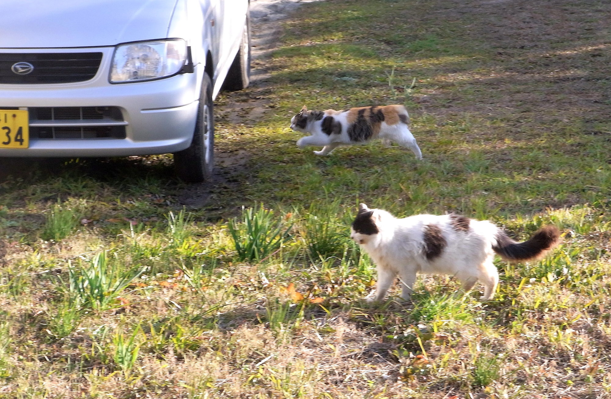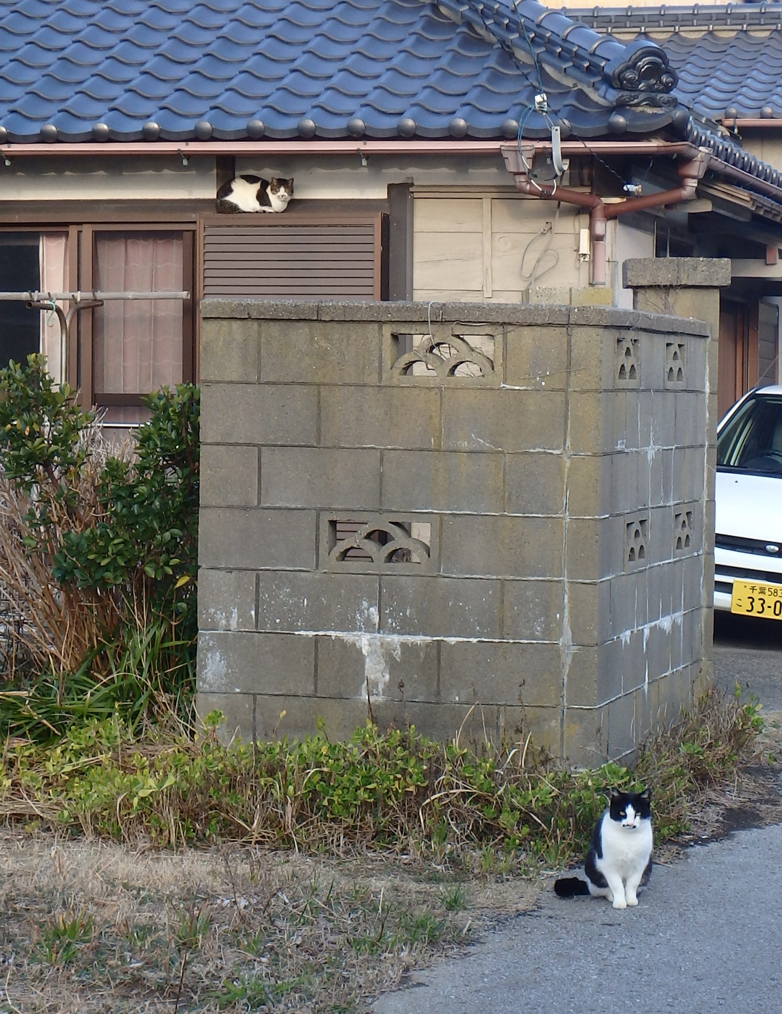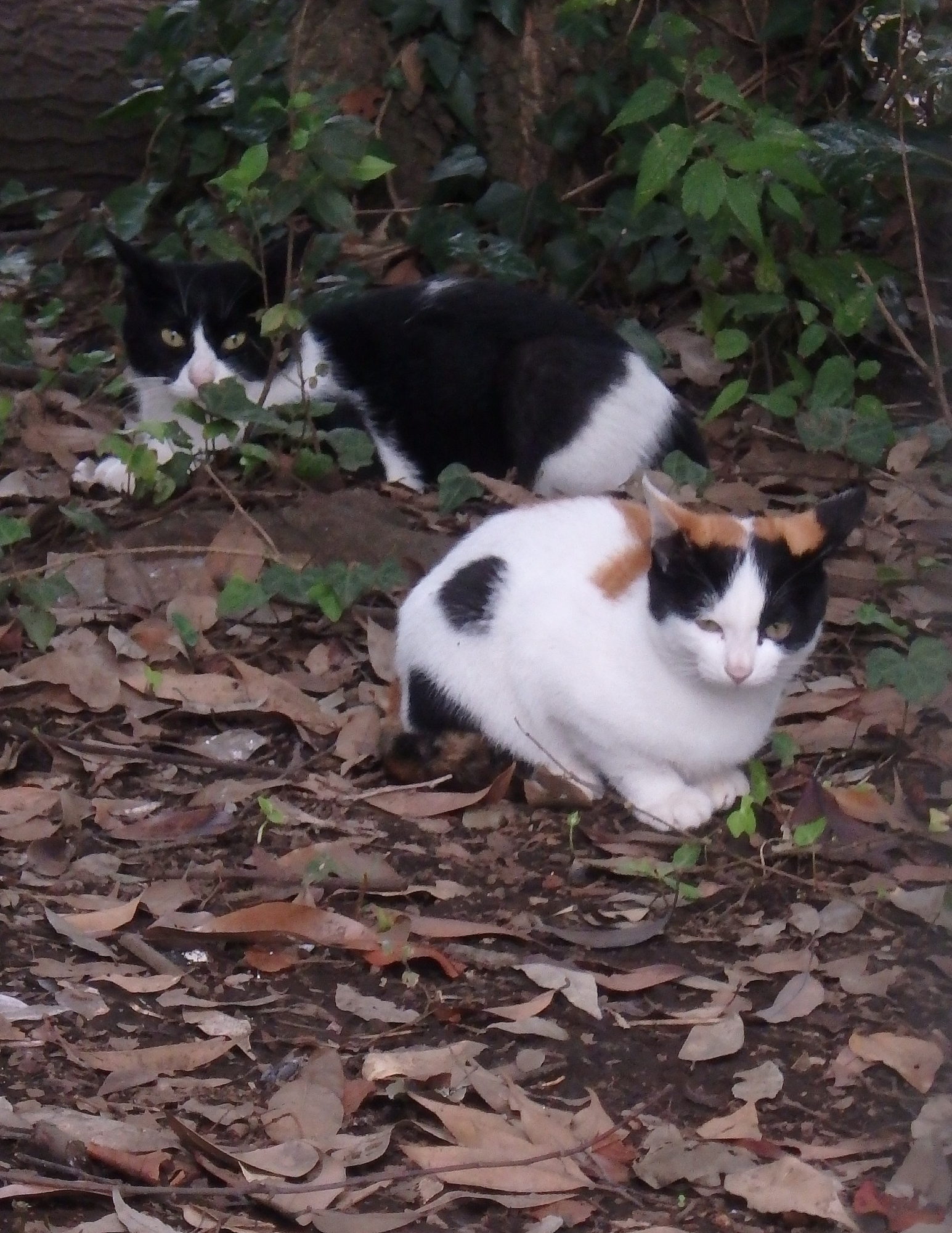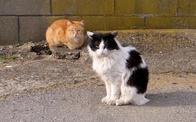 2011年3月6日のシロちゃんとGFの猫です。道で出会ってシロと呼ぶと、きちんと挨拶します。家の近くの路上で、ツーショットです。