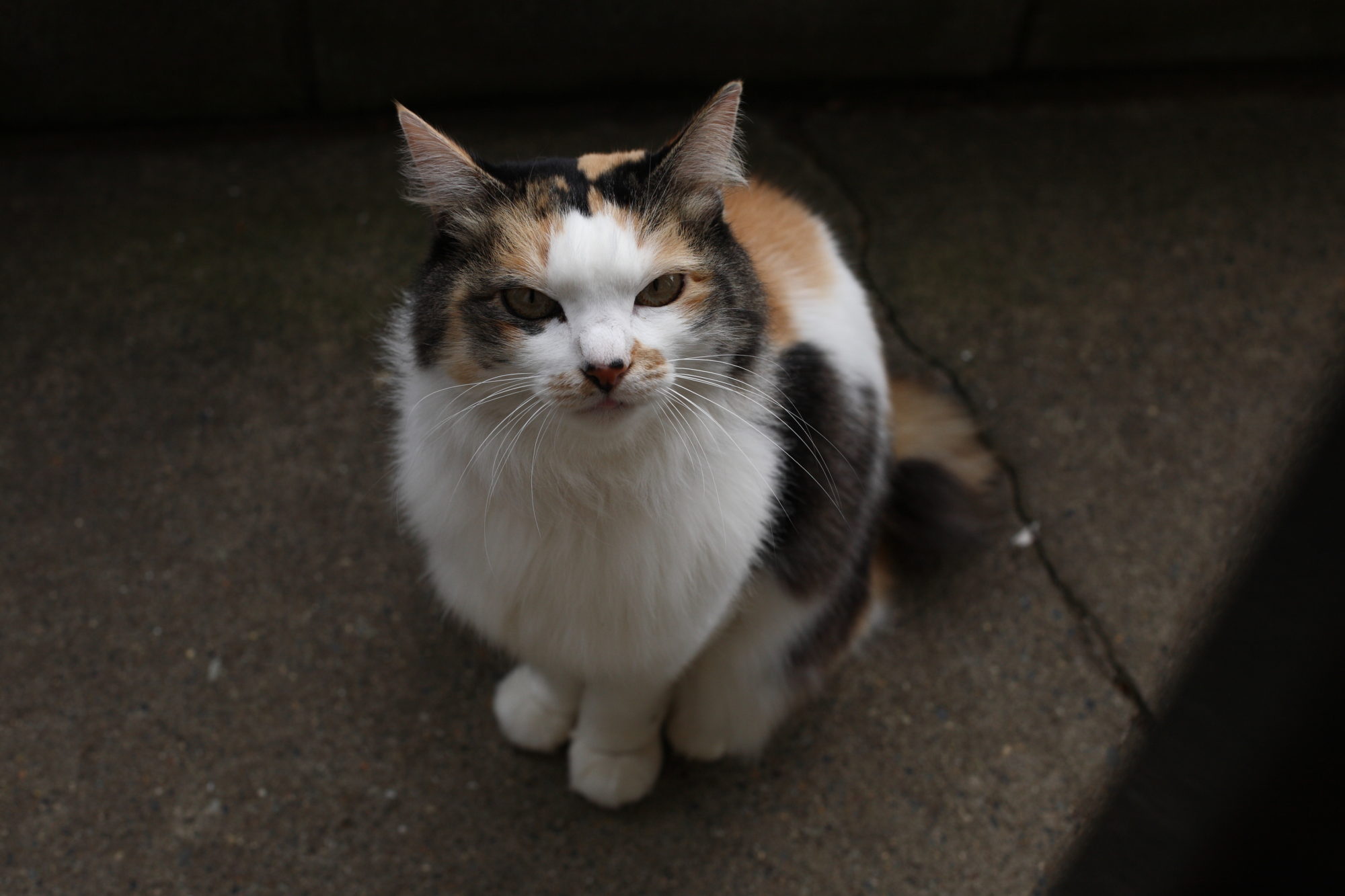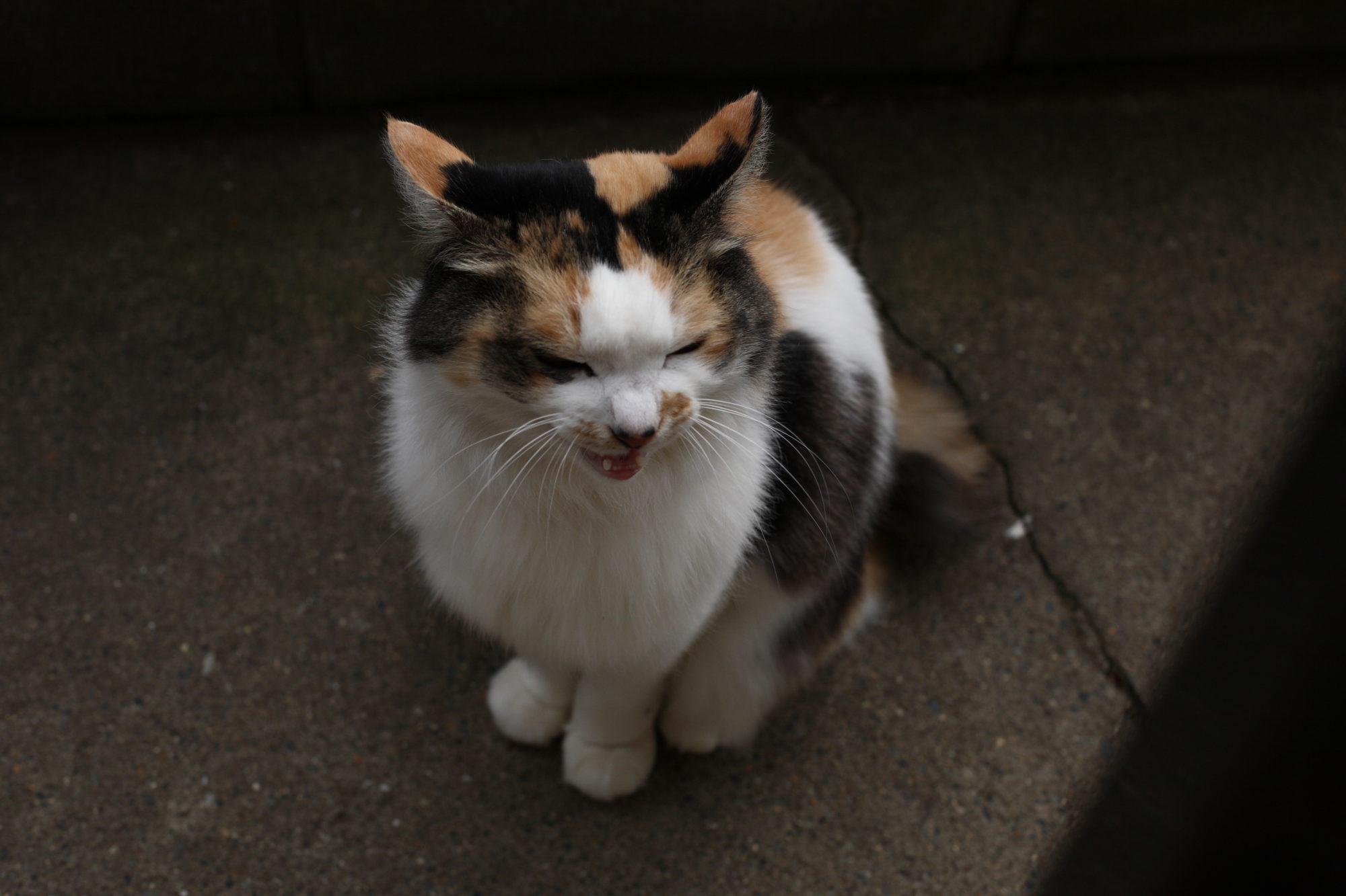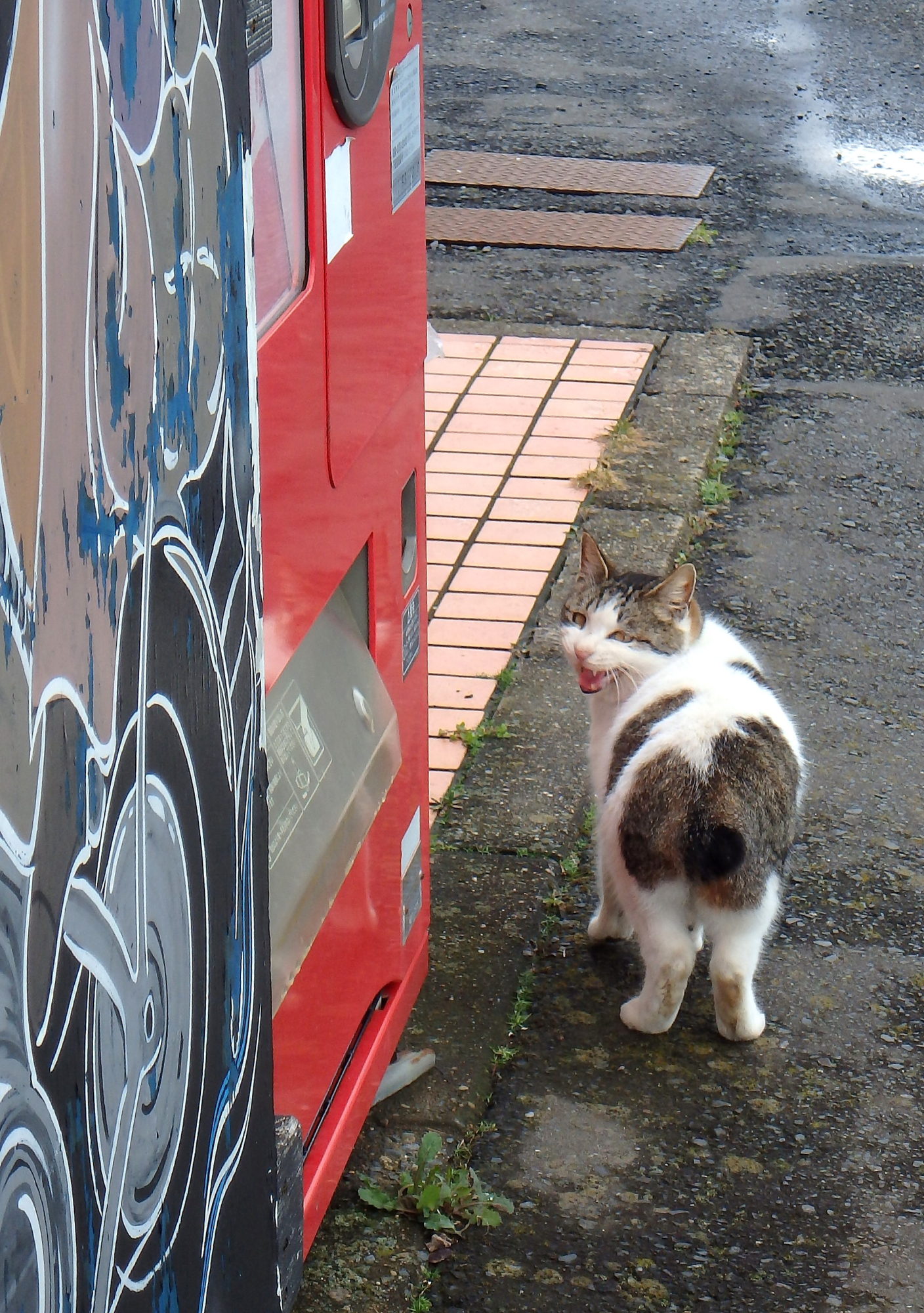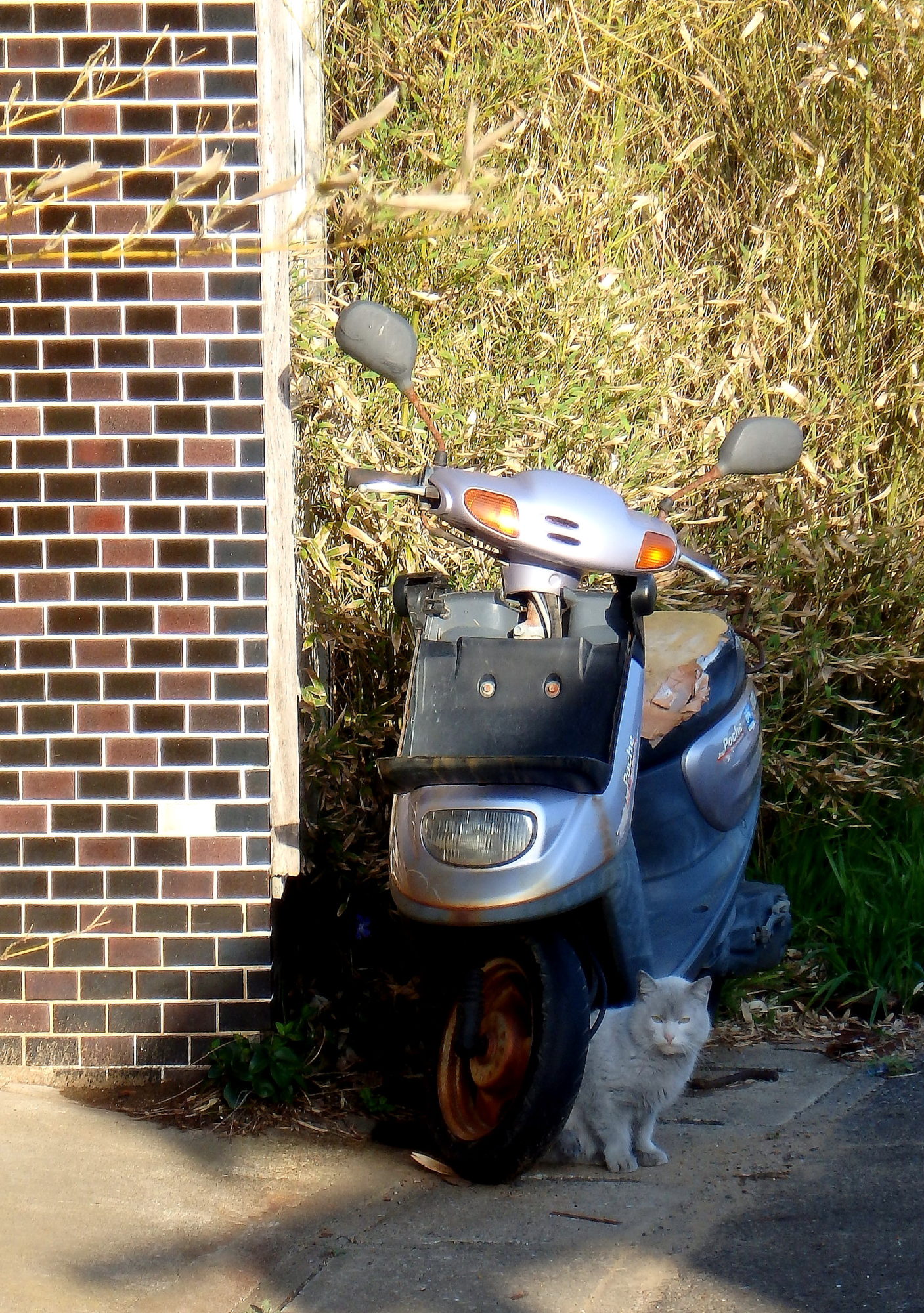 2011年3月6日のシロちゃんとGFの猫です。道で出会ってシロと呼ぶと、きちんと挨拶します。家の近くの路上で、ツーショットです。