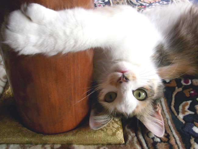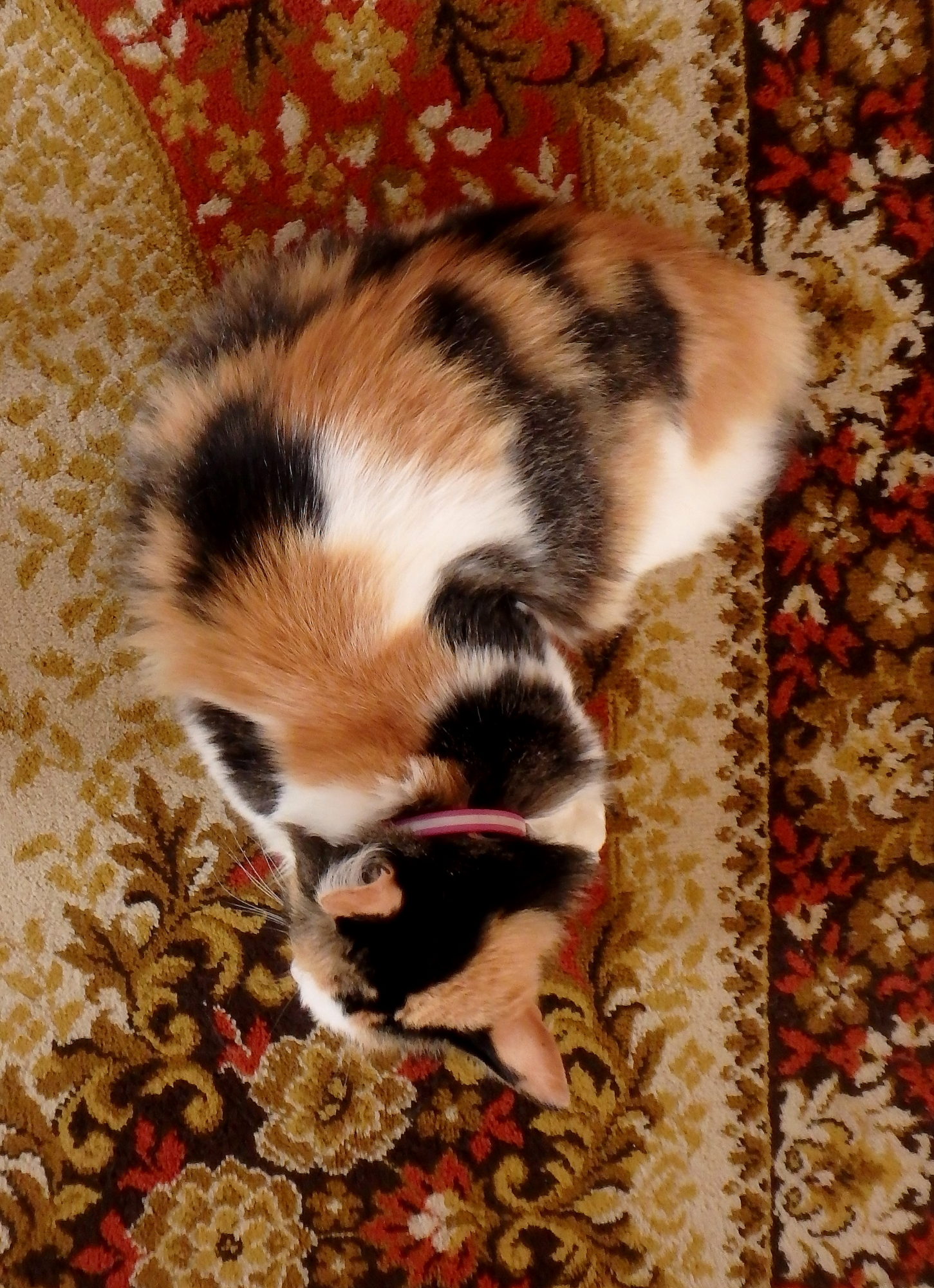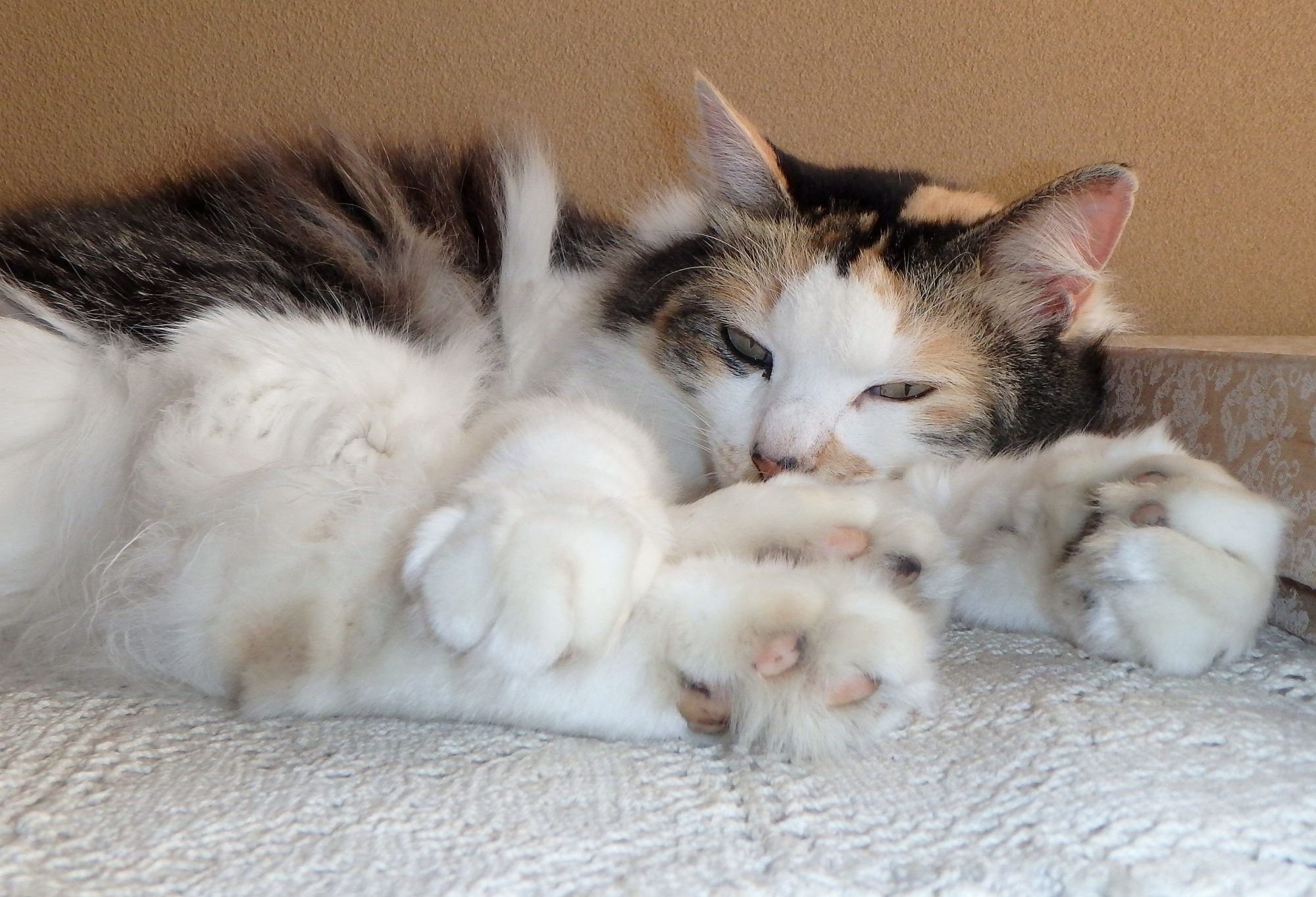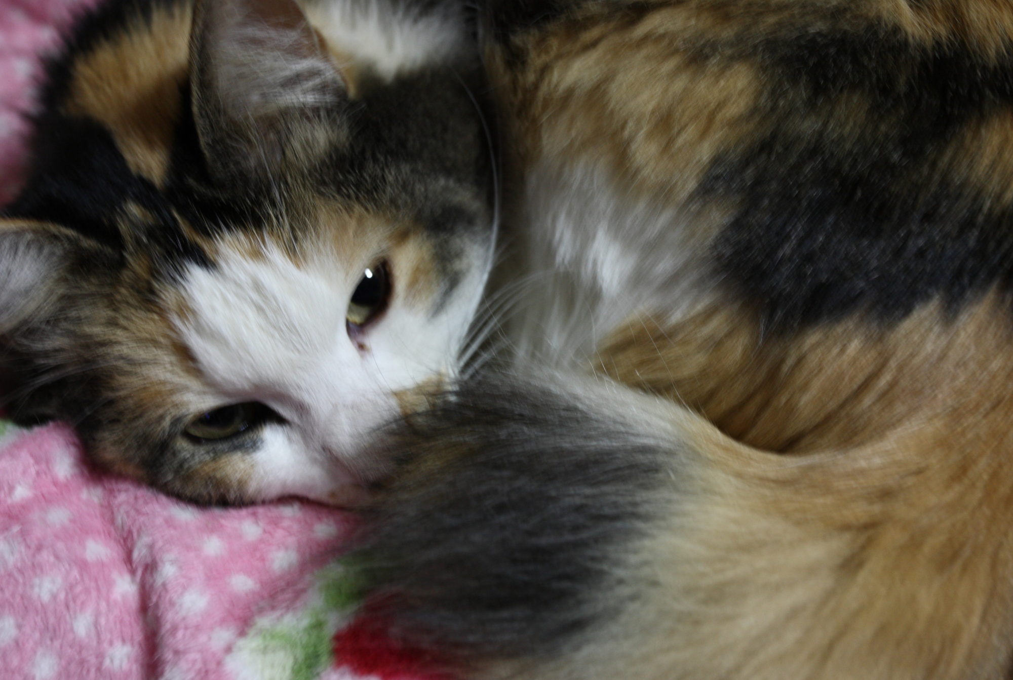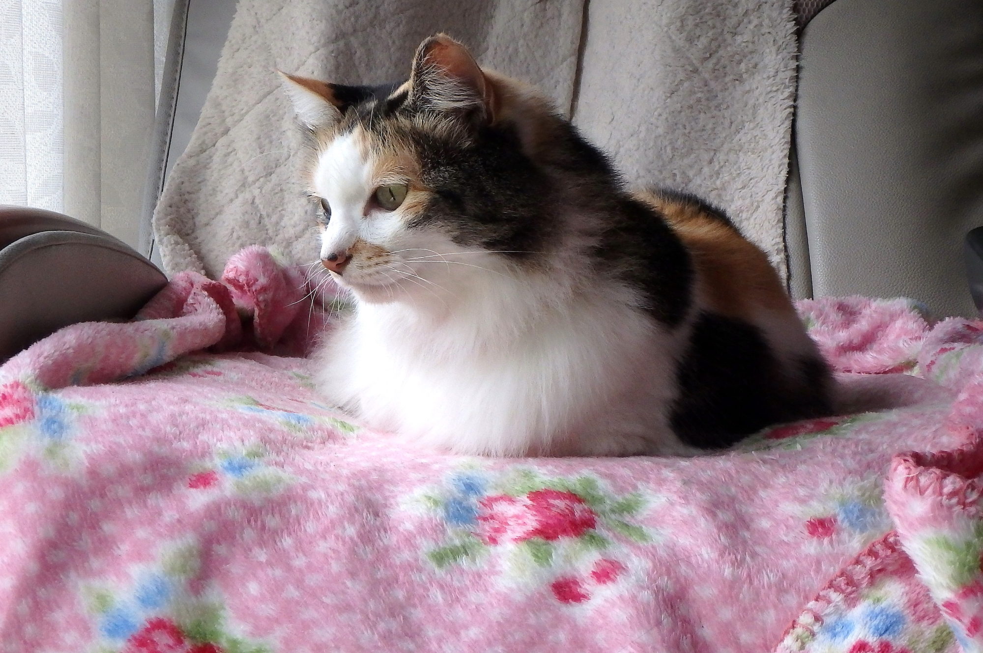 上の猫と別猫のようで、シロは毛深くなってます。実際体重も夏と冬では1キロ以上差がありました。が、自然と夏になると細くなるので、「シロ、どうやってダイエットしたのか?」と太り気味の人間が二人ほど聞いてました。太ると毛繕いも大変そうで、襖や柱に寄りかかって毛繕いしてました。重い時は、6キロ近くありました。