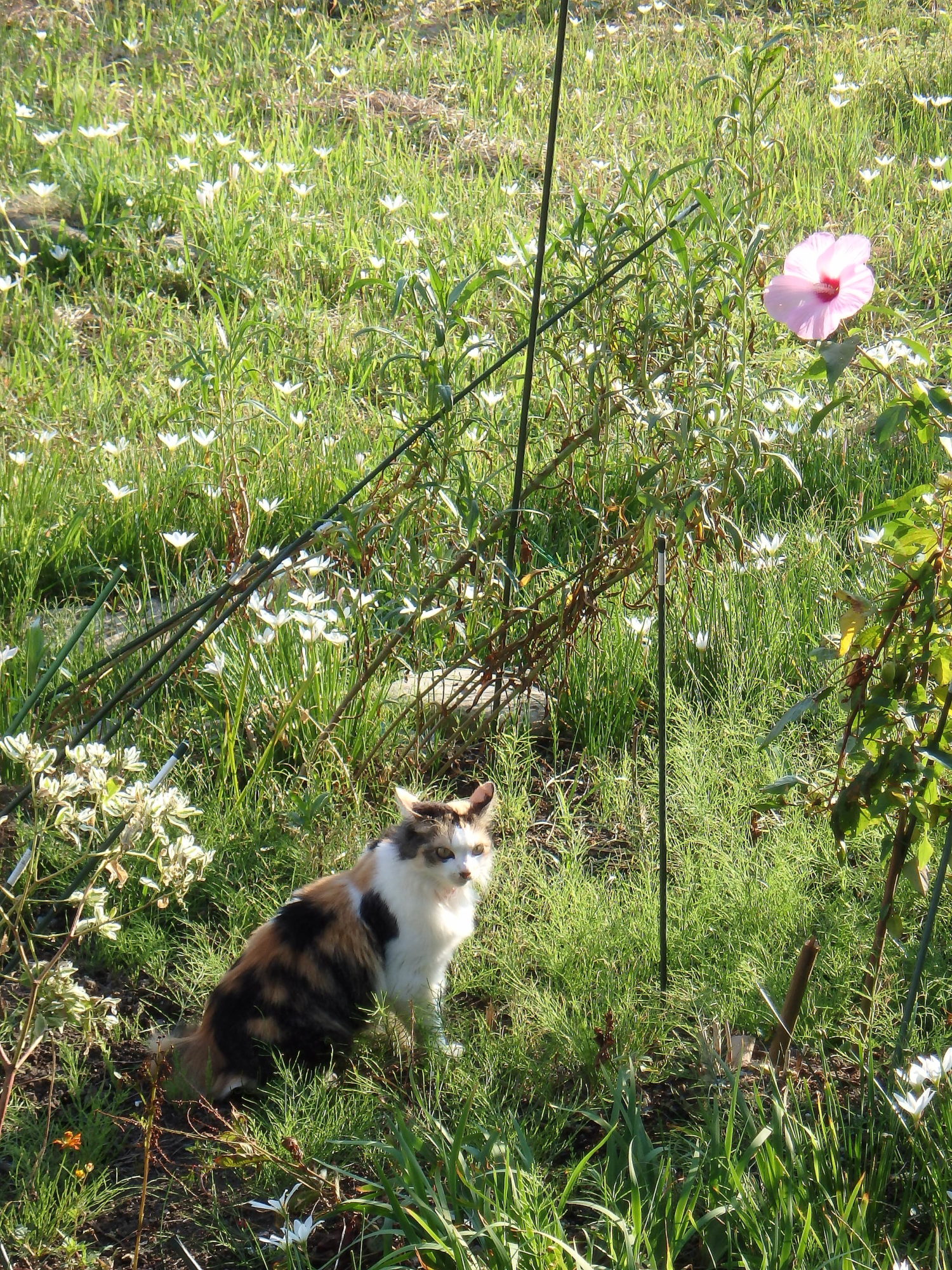 この猫は、ミーちゃんと違って人間が大好きです。玄関に誰かが来ると、必ずお出ましして挨拶します。ですので、実はシロちゃんの方が、写真は沢山あるのです。カメラニャーマン?
