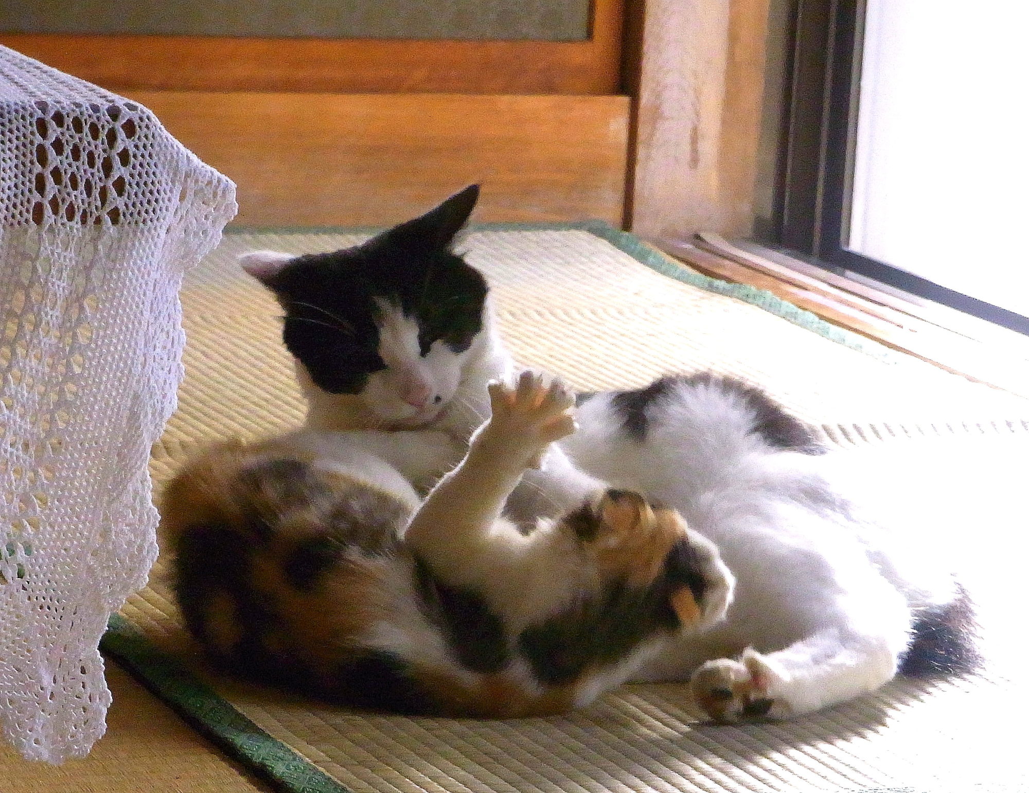 兄猫とじゃれ合ってます。兄猫に比べると小さいので、この頃はチビと呼ばれてました。
